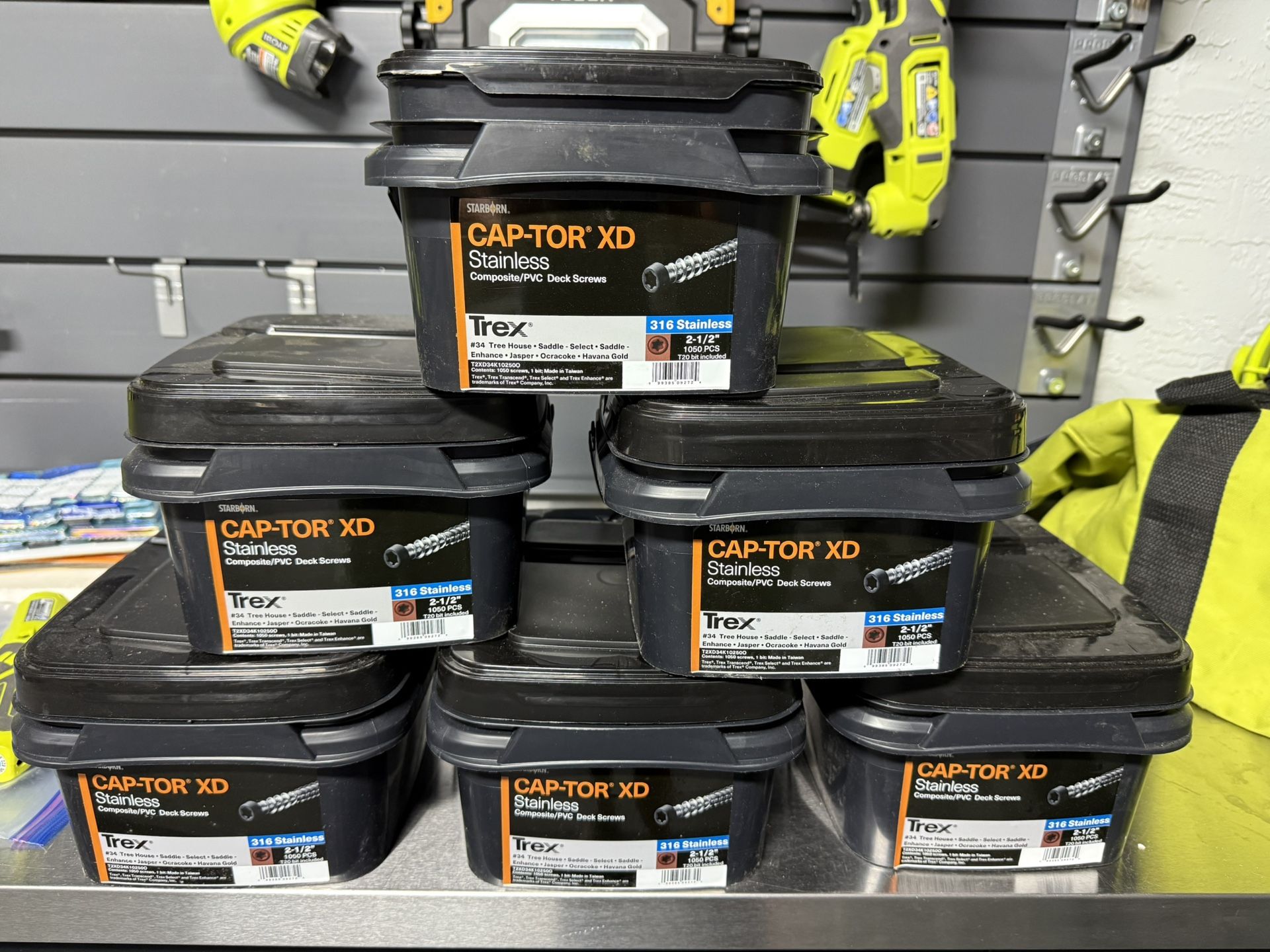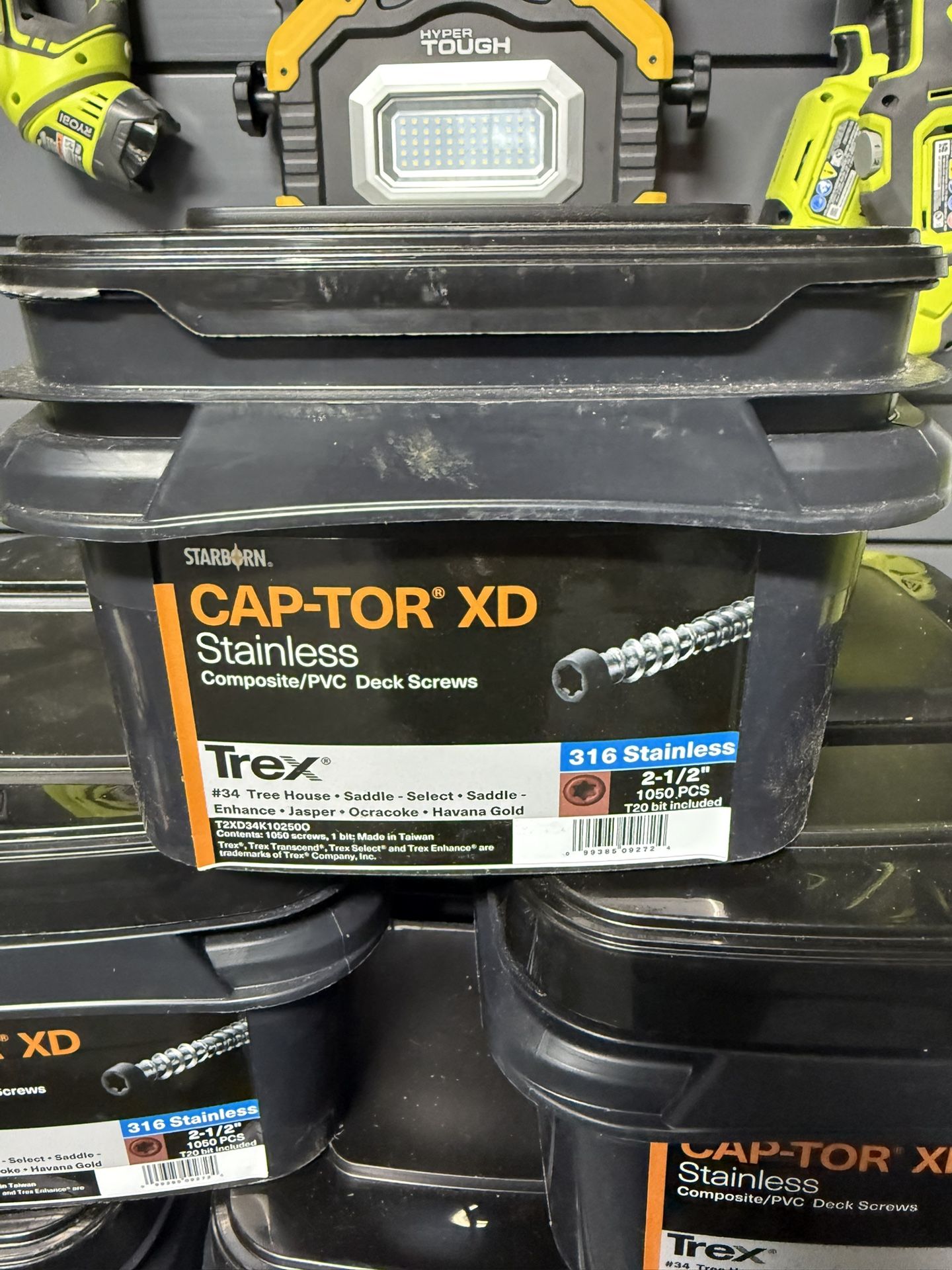Starborn Captor XD Deck screws for composite decks (Trex, Timbertech etc).They are #10. 2.5 inches long. There are 6 boxes, each box is 1,000 screws.I think I paid $400 per box!$100 for all 6 boxes.