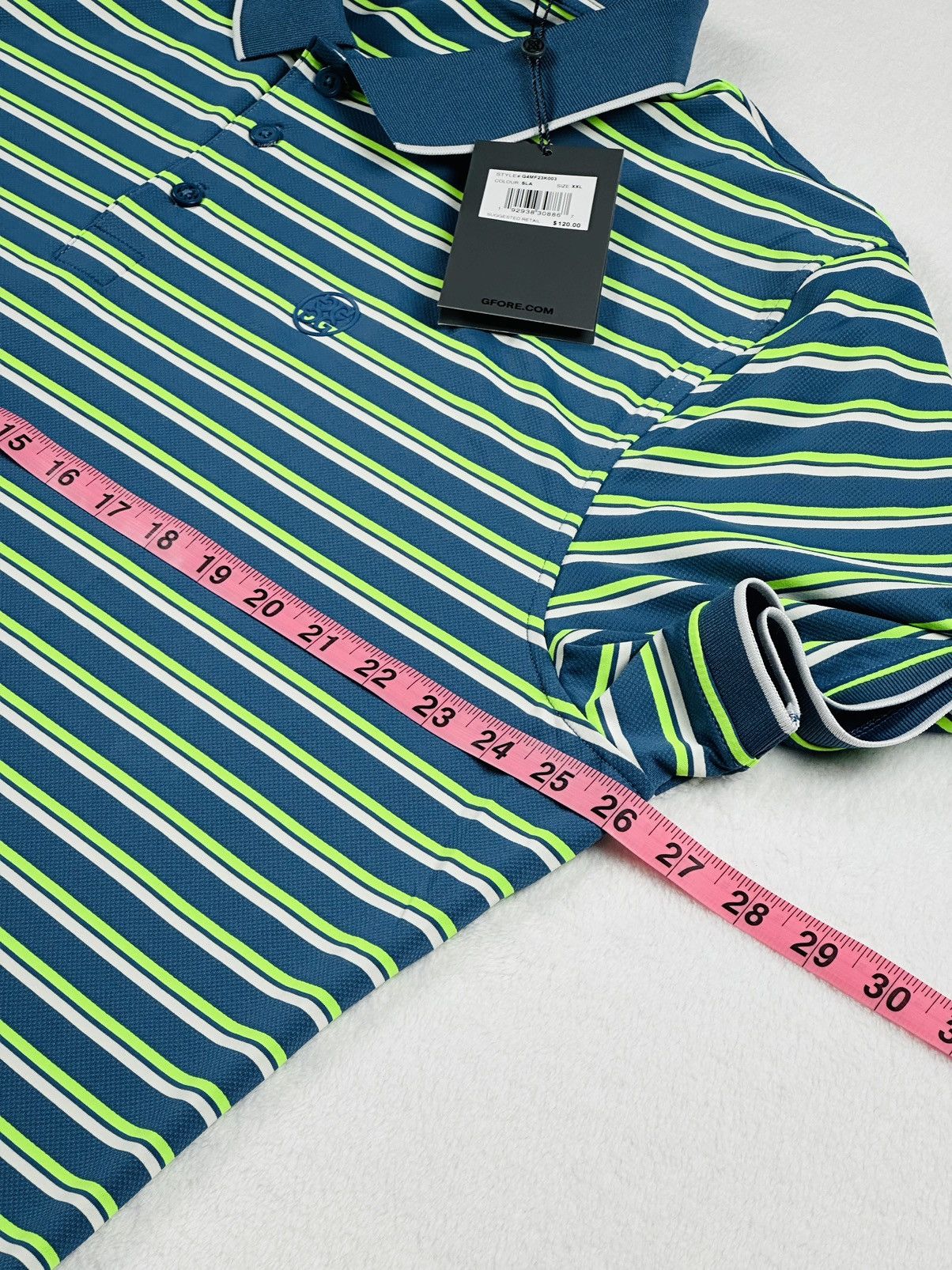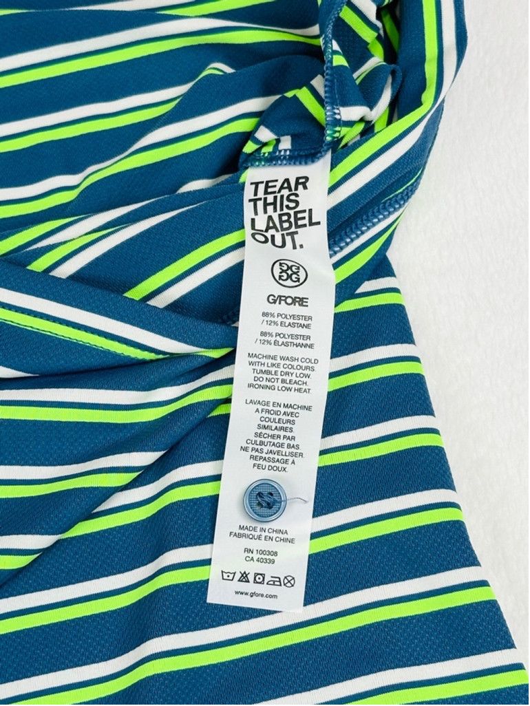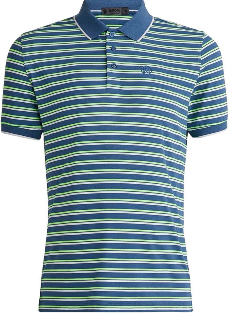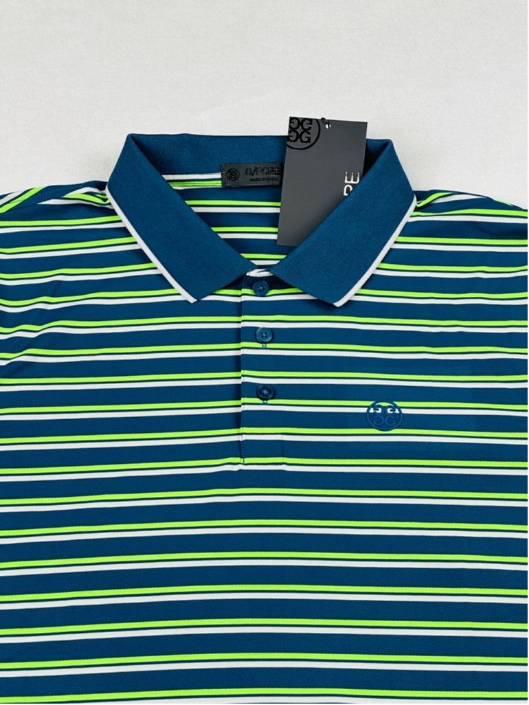 NWT | New with Tags ($120)G/Fore Golf Polo Shirt •Size: XXL (Measurements provided below) •Style: G4MF23K003•Color: Blue, Green, White•Tri-Stripe Print•Lightweight Jersey-Like Fabric •Short Sleeve •88% Polyester, 12% Elastane •Machine Washable •Made in China