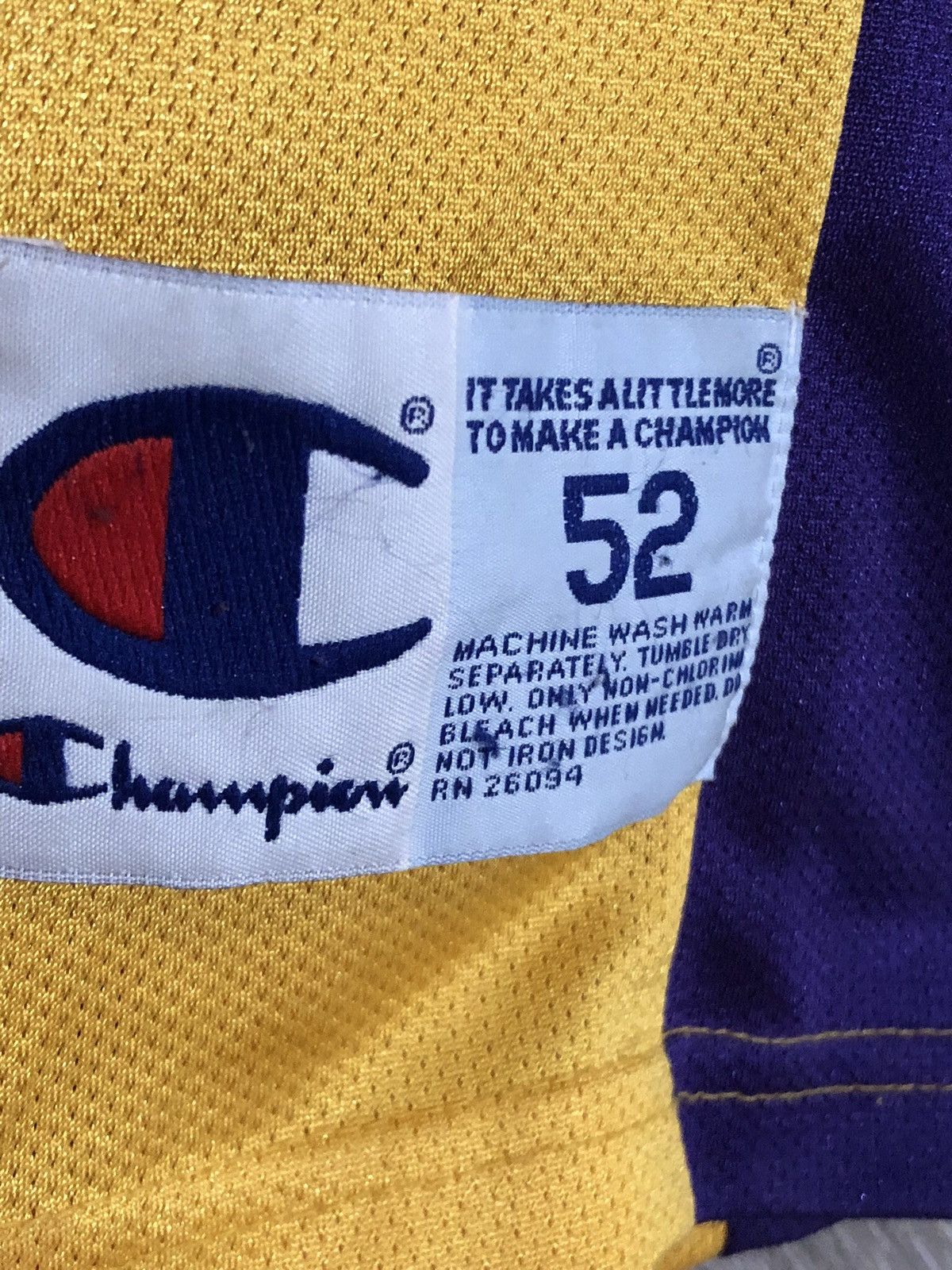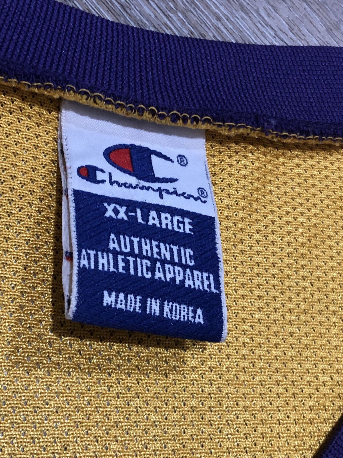 90s Kobe Bryant Los Angeles Lakers Champion JerseyMen’s XXLMen’s 52Yellow jersey with purple and white accenting. Small stain on chest and under number in front. White and purple piping.