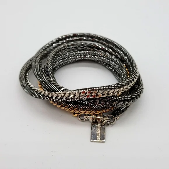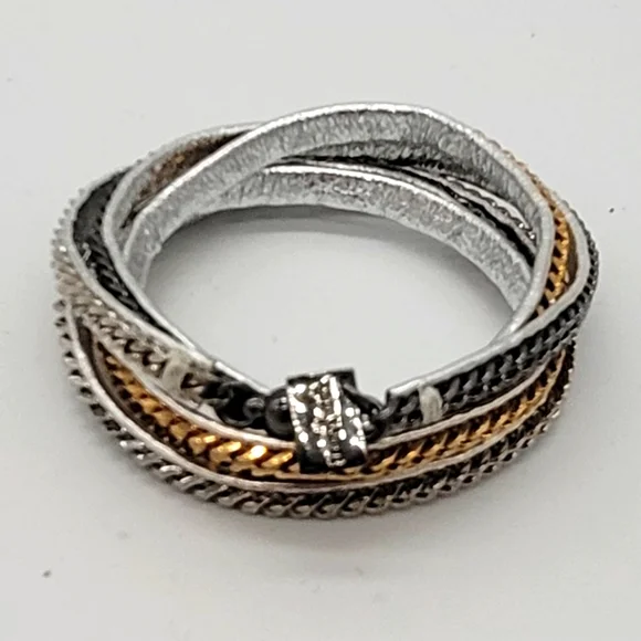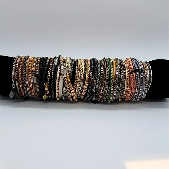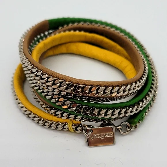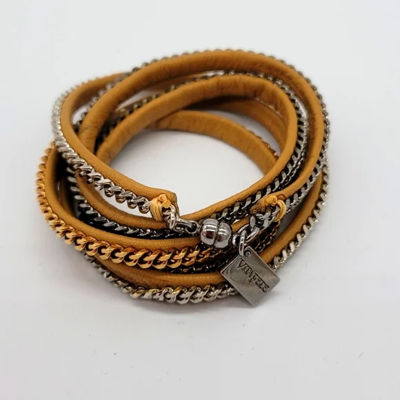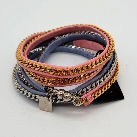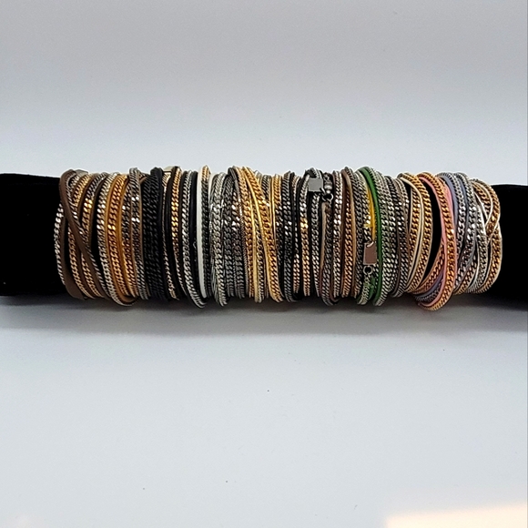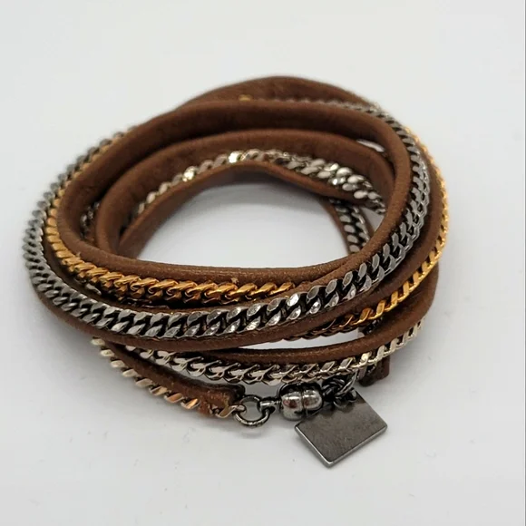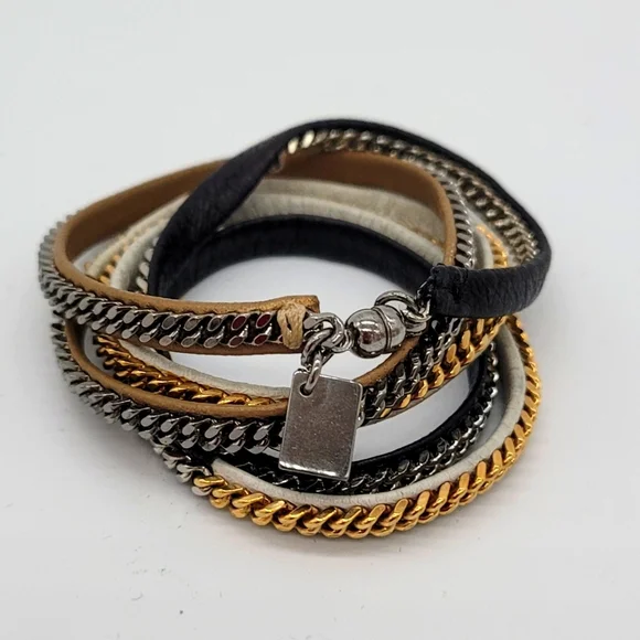 Metal Chain Color: Combinations of Gold Silver BlackLeather Colors: Silver, Gold, Blalk and combination of multi colorsDepending on wrist size, it can be wrapped 3,4,5 timesMade in ItalyMagnet closure (Item#RB58)