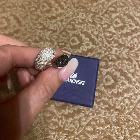 Swarovski crystal louise black and white ring in size 55. It’s in good used condition. I have is a match ming bracelet in my closet. Bundle and save. Thank you for your interest.