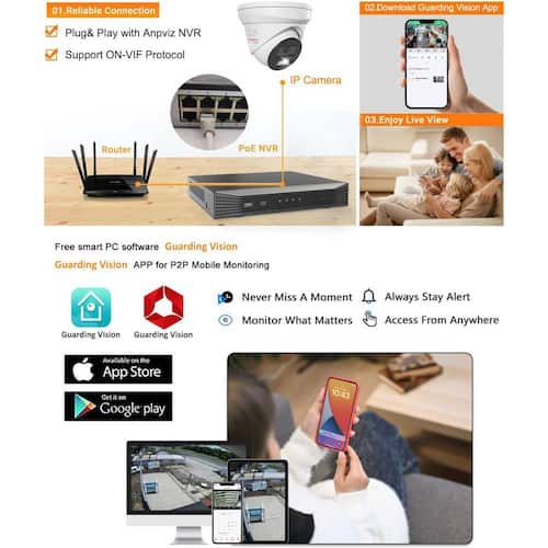 About This Product:Camera uses intelligent AI technology to detect people and vehicles accurately, reducing false alarms triggered by leaves and other objects. Equipped with infrared and warm light sources, it ensures clear imaging in various lighting conditions. The dedicated full metal housing protects the outdoor camera from dust and rain, achieving large area coverage. Perfect for outdoor applications. Professional surveillance designed for your home and business. Protect your home in real-time, day or night. You should always feel safe and secure. With integrated intelligent motion detection and vivid night vision, you can rest assured that the next generation of security protects your property.