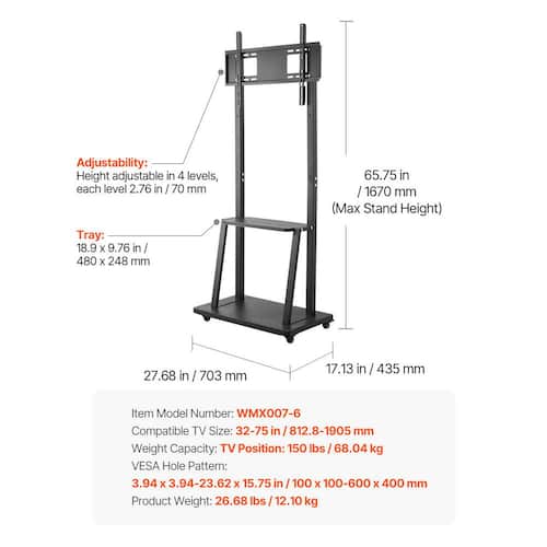 About This Product:Manual Floor TV Stand. Upgrade your TV experience with this universal manual stand, It lets you move your TV for the ideal viewing angle, making it suitable for the living room, bedroom, or office. With durable steel construction and a stylish design, it complements your decor.