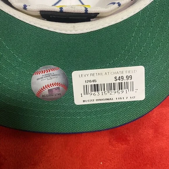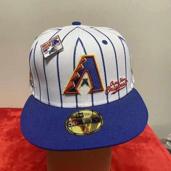 Show off your love for the Arizona Diamondbacks with this officially licensed New Era 59Fifty Big League Chew fitted hat. The hat features a pinstripe design and the team´s logo on the front. It is made in Bangladesh and comes in a unisex adult size of 7 1/2. Perfect for any baseball fan, this hat is a great addition to your collection.Attention: No cancellations accepted. All items bought and paid for will be shipped. Payment expected within 48 hours of purchase for any offers or counter offers. Please Review All photos, the item pictured is the actual item that will be shipped. No cancels or trades. Items must be returned in exact condition listed and sold, unused/unworn, or return will not accepted. I only take payment through this platform. Do not contact for phone number or payment outside of this platform. All items sold as is.