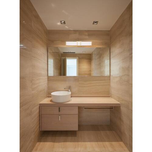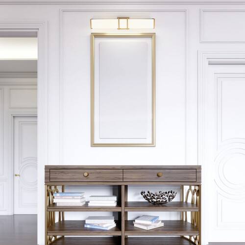 About This Product:Give your bathroom a bold statement with the Tomero Vanity Light by Eglo. The brushed gold finish and white acrylic diffuser create a crisp look and bright clean ambience. With clean lines and classic styling, this 23 inch LED vanity light is versatile enough to be used in any transitional setting. LED technology and horizontal or vertical mounting options make this 1-light wall light a perfect choice. Enhance the overall look of your modern bathroom or vanity with this contemporary fixture.