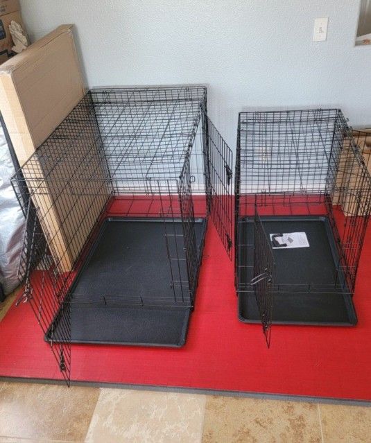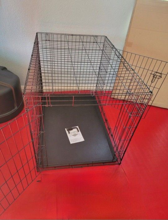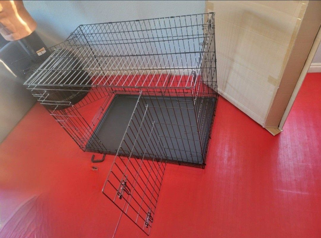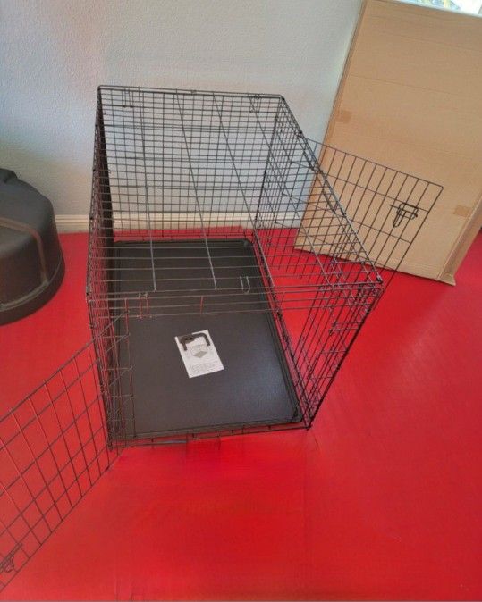 New in box 42" XXL Dog Crate up to 90 lbsIncludes 2 doors, bottom easy slide and clean floor tray. Folds flat for easy storage and transport. All new pet / Dog supplies available Jaulas de mascota. Animal cage dog kennel great for cats as well. Indoor outdoor pet shelter pet transportation. All sizes available, everything new in box