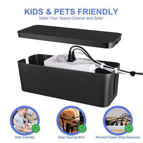 About This Product:Organize your workspace effortlessly with the Cable Organizer Box Set, which includes 3 sizes to accommodate all your power strips, cords, and adapters, keeping them tucked away neatly. With 28 upgraded cable management accessories, you´ll have everything you need to maintain a clutter-free environment. The sleek, tidy appearance and sturdy, electrically insulated design ensure safety for children and pets, making it a smart and stylish choice for any office or home setup.