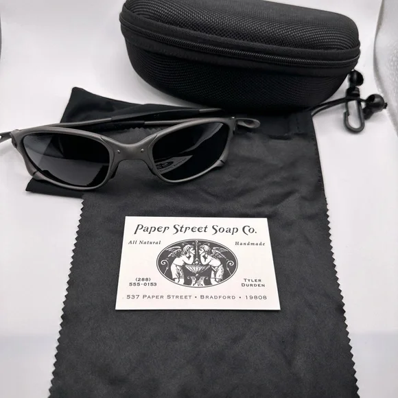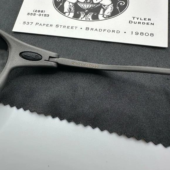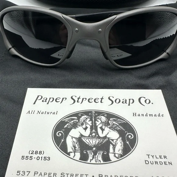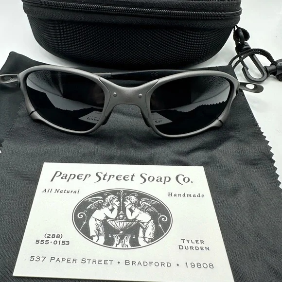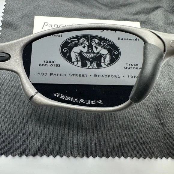 PLEASE NOTE IN THE FILM SEVERAL DIFFERENT COLORED LENSES WERE USED IN THE SUNGLASSES IN DIFFERENT SCENES****These sunglasses come with a Paperstreet soap business card (as seen in the movie) and with a special message written on the back. See last photoCleaning out some of my Fight Club collection and I am selling brand new Paperstreet Shade sunglasses like the ones Brad Pitt wore in Fight Club.Paperstreet shades is a collector´s dream. These shades were produced in very limited quantity back in early 2000 shortly after Fight Club´s release.The sunglasses are like the original screen used version. As seen in the scene depicted in the first picture.They have similar weight, look, and dimensions at a fraction of the cost.The normal version of go for over 2000$ on ebay.So why pay the marked up price when you can buy Paperstreet shades for a fraction of the price? Thats why these were produced in such limited quantities. Now is your chance to own a brand.These have the exact color lens that Brad Pitt wore in Fight Club as it was used from the same file that was seen on screen. The sunglasses have never been worn before and are completely new. They have only sat in my collection for years.It features a multi colored lensThis auction comes with a CLEANING CLOTH AND ALSO A ZIPPER CASE