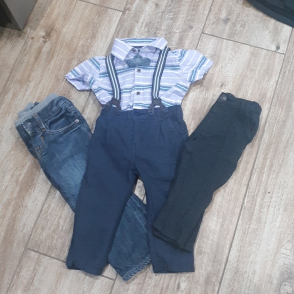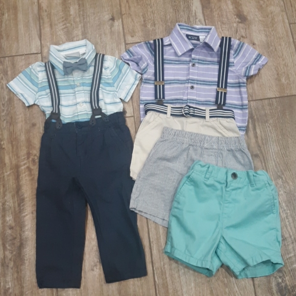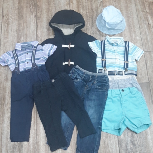 Gap Jeans Lined 12-18 MonthsGrey Dress Pants Genuine Kids 18MLight Blue Boat Hat ReversibleThe Children´s Place12-18M Purple Collar Shirt OnsieTeal Button Down Bodysuit 9-12MAqua 12-18 Months ShortsKhaki 12-18M Shorts with BeltCarter´s Navy Striped SuspendersKoala Kids Pants with Built in Suspenders 9-12MChambray Stripe Shorts& Bow Tie 18 MGray Pea Coat 18-24MSherpa Lined Hood Cork Buttons Full ZipAll in Excellent Like New Condition