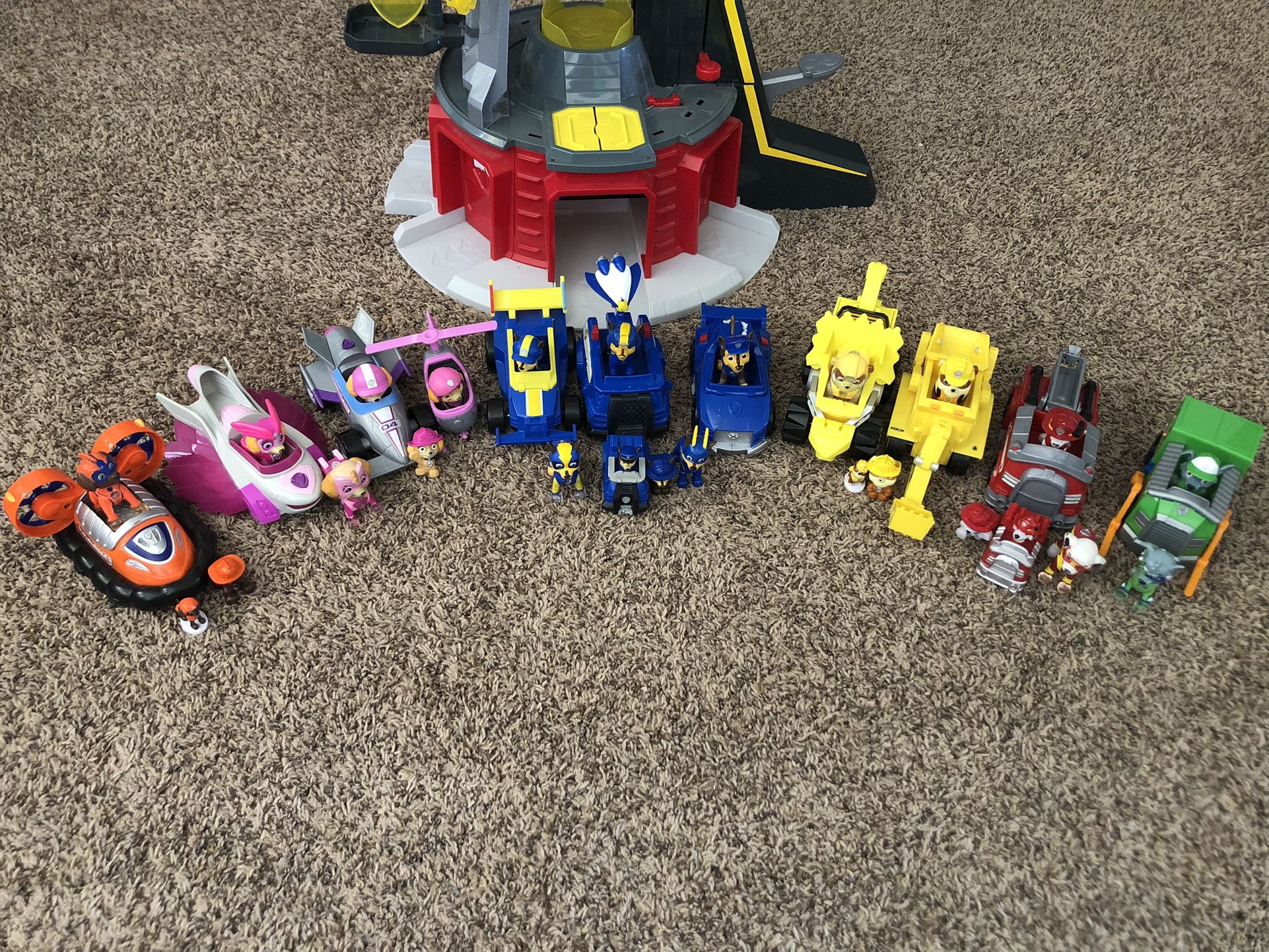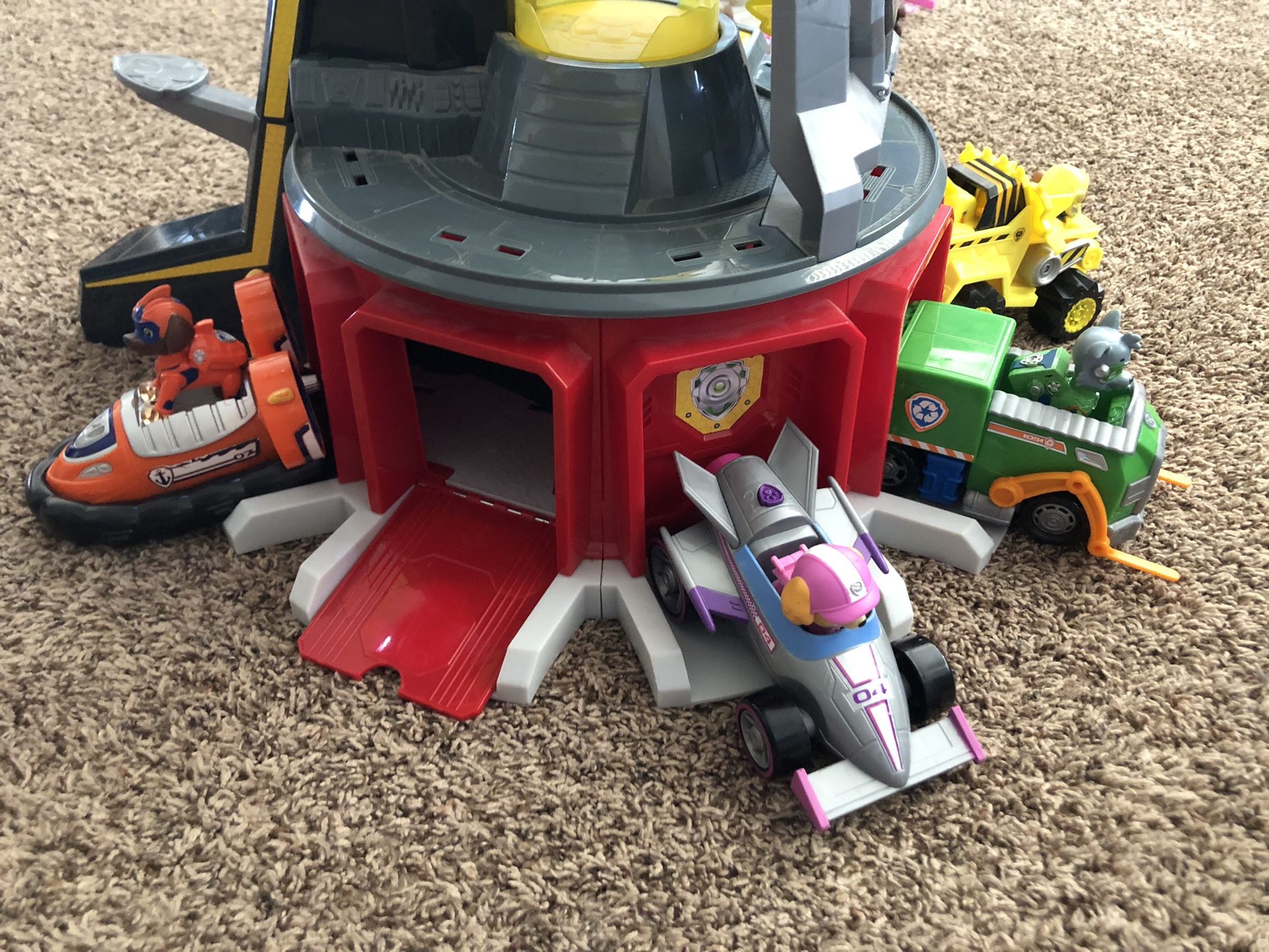 This is a set of everything you need to complete your Paw Patrol collection! It includes the lookout tower, figures, cars, and zip-line hooks. The tower lights up, has an elevator, a zip-line, pop-out screens at the top of the tower, a pretend play telescope, a drop hatch for the characters to drop into their cars, and a launch button to launch their car out of the tower. I may be bias, but this was the coolest tower that the Paw Patrol brand has released to date.Also included are mighty pups and their vehicles, as well as other duplicate characters such as racing versions and earlier versions with vehicles including Skye with her helicopter that has a hook at the bottom for rescue missions. In addition, Rocky’s recycling truck opens for storage in the back.