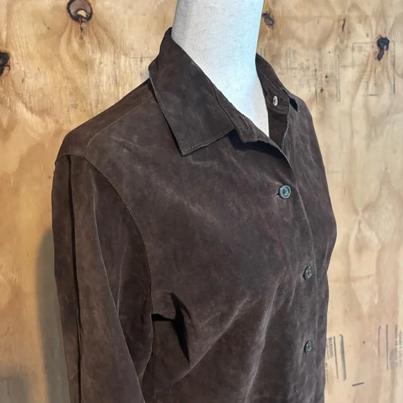 Field Gear Dark Brown Suede Leather Jacket Eyelet Detail Sz SP2P 20”Length 26”Preowned. Smoke free. Pet free.
