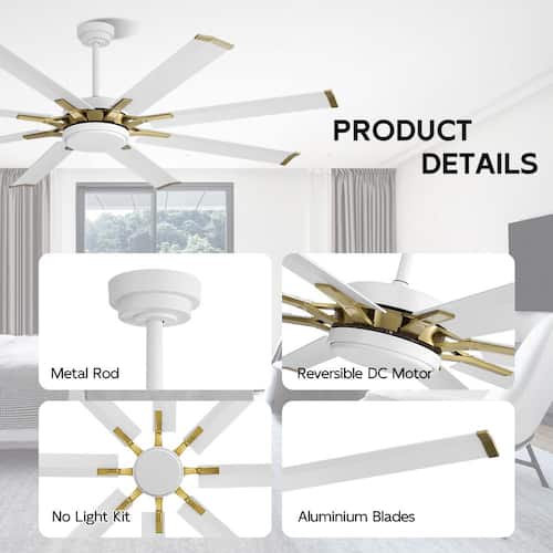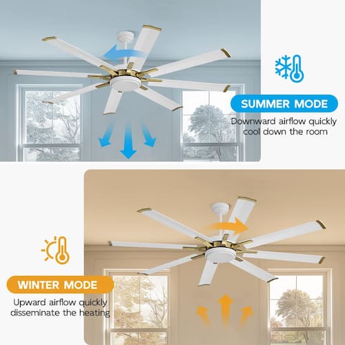 About This Product:This 96 in. 8-blades fan seamlessly blends modern aesthetics with functional design. Its exquisite appearance and compact structure allow it to effortlessly integrate into various home styles, adding a touch of fashionable ambiance to your space. With meticulously crafted 8 fan blades and a high-efficiency motor, it delivers a consistent and powerful airflow. Whether it´s the scorching heat of summer or the cozy needs of winter, this fan caters to your different seasonal requirements, ensuring you maintain a comfortable living environment.