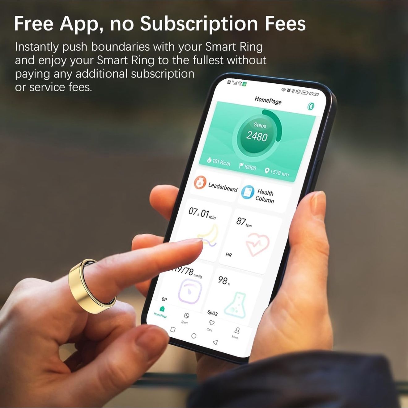 Health Tracker Ring, Smart Health Ring for Women Men with Heart Rate, Blood Oxygen, Sleep Monitor, Steps,Calories, No Subscription Fee, IP68 Waterproof Smart Ring for iPhone & Android (Gold, 6#)New!! 33165Se habla Español