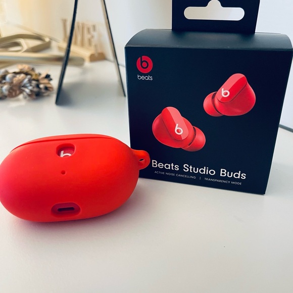 Beats Studio Buds with active noise cancelling. Vibrant red color and protection cover. 4 months old