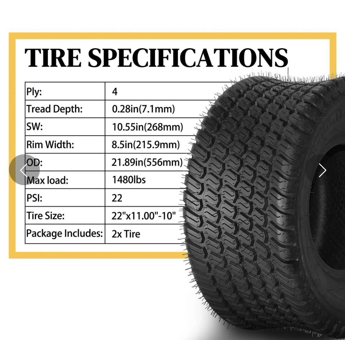 TUFFIOM Tubeless 4PR Lawn Mower Tires Set of 2 QM332-5