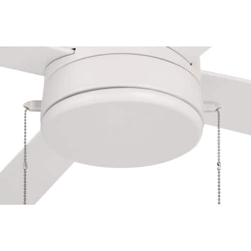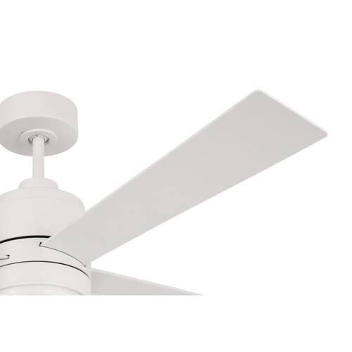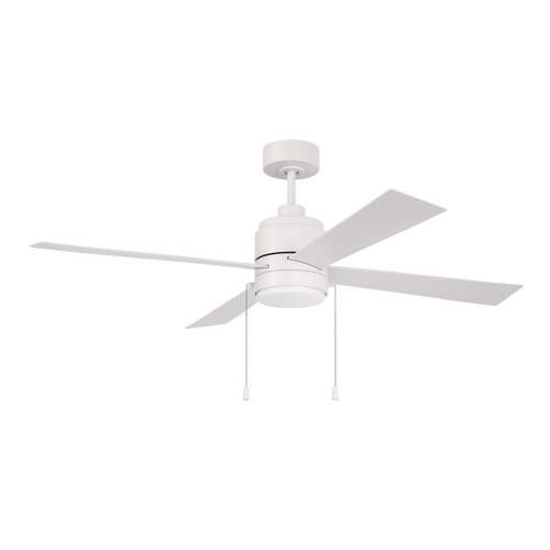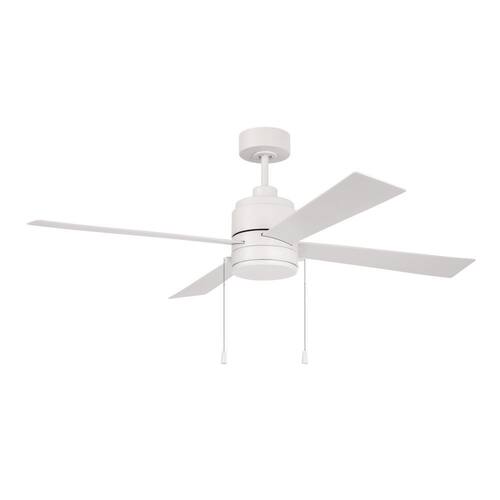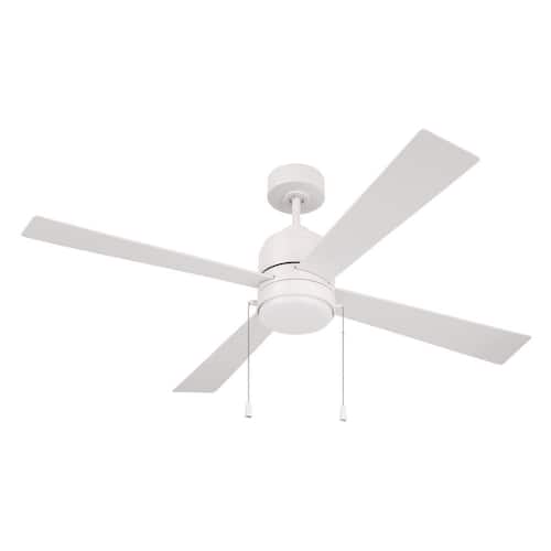About This Product:The 52" Outdoor McCoy ceiling fan in White by Craftmade delivers clean styling, rugged performance, and weather-ready durability. Perfect for patios or porches, this wet-rated fan features a reliable 3-speed reversible motor, four durable ABS blades, integrated dimmable LED lighting, and pull-chain controls. The dual-mount design allows flexible installation on flat or angled ceilings.