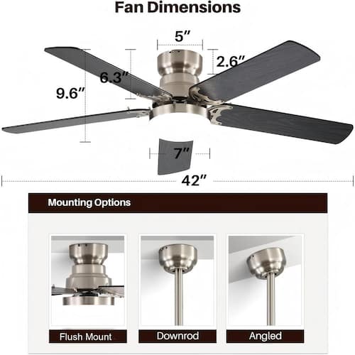 About This Product:The 42-inch modern high-quality ceiling fan merges sleek simplicity with exquisite design, delivering a timeless aesthetic that effortlessly elevates any room´s decor-a perfect choice for homeowners aiming to bring sophistication and elegance to both indoor and outdoor spaces. Its adaptability shines in diverse settings, whether it´s enhancing the ambiance of a sunlit patio, adding comfort to a cozy living room, fostering tranquility in a bedroom, or complementing the charm of a gazebo, all while harmonizing functionality and style. Built with robust MDF blades, this fan promises exceptional durability and dependable performance, making it a practical, stylish upgrade for any home or outdoor retreat.