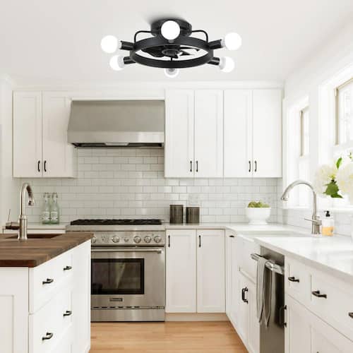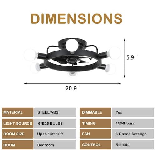 About This Product:Transform your home with the Mediterranean charm of our 21 in. Ship Wheel Design Ceiling Fan. This unique fan features a distinctive ship wheel design, adding a nautical touch to any room. Equipped with 6-lights, it provides ample illumination while enhancing the decor. The powerful DC motor ensures efficient and quiet operation and the reversible blades offer year-round comfort by allowing you to switch between cooling and warming modes. With 6 adjustable speeds and an easy-to-use remote control, this ceiling fan combines style and functionality to elevate your living space.