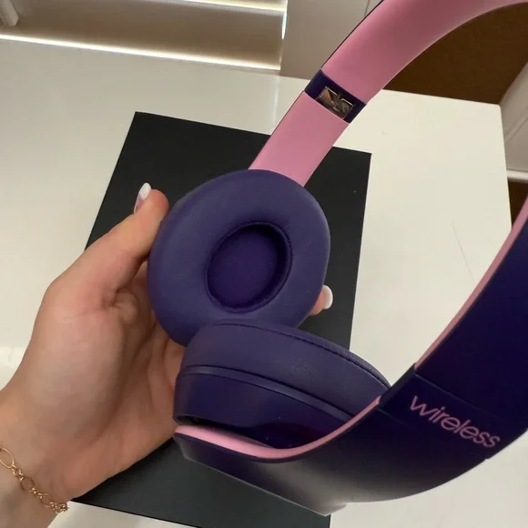 Stylish Beats wireless bluetooth headphones in purple and pink. Perfect for music lovers.Have been used a few times for travel, still in great condition!Comes with charger
