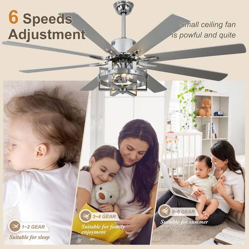 About This Product:Enhance your space with this 8-blade metal caged ceiling fan, offering both functionality and style. The metal shade complements three E12 lights (not included), providing excellent illumination while serving as a striking focal point. The modern matte black finish adds a touch of classic charm to any room. The DC motor features 6 speeds with an integral reverse function. The handy remote control provides independent light operation and speed control. Illuminate and ventilate your home with this modern industrial ceiling fan, combining elegance and practicality.