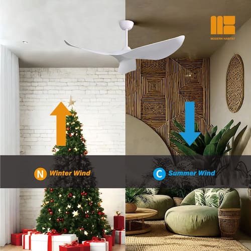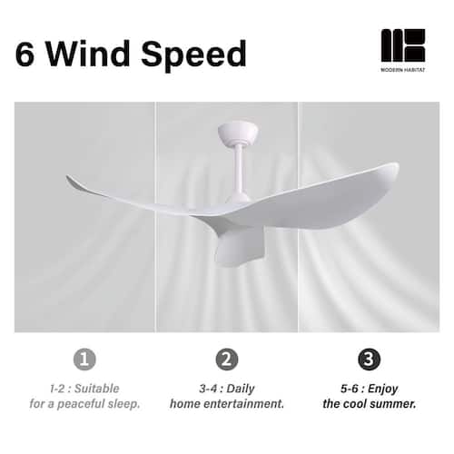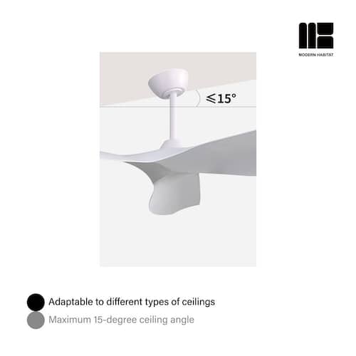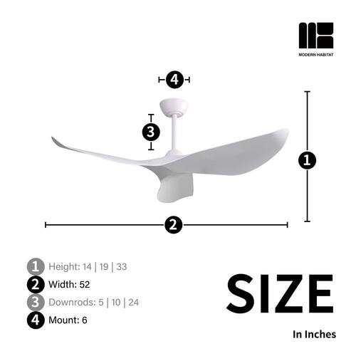 About This Product:About This ProductRefresh your living space, whether indoor or outdoor, this summer, with the Kemp Collection 52 in. Natural White ceiling fan with light from Modern Habitat. The Three White ABS Blade feature a modern farmhouse style with a quiet DC motor that provides Six adjustable speeds and Three timer setting with remote control. It comes with Three downrod sizes (5,10 and 24 in.) to fit spaces from 200-400 square feet, from living rooms and kitchens to home office bedrooms, accommodating various ceiling heights from open-mount to high ceiling. The mounting options also allow installation on angled ceilings. The fan features easy-install Quiet Motor technology with three airflow modes, guaranteeing minimal noise.