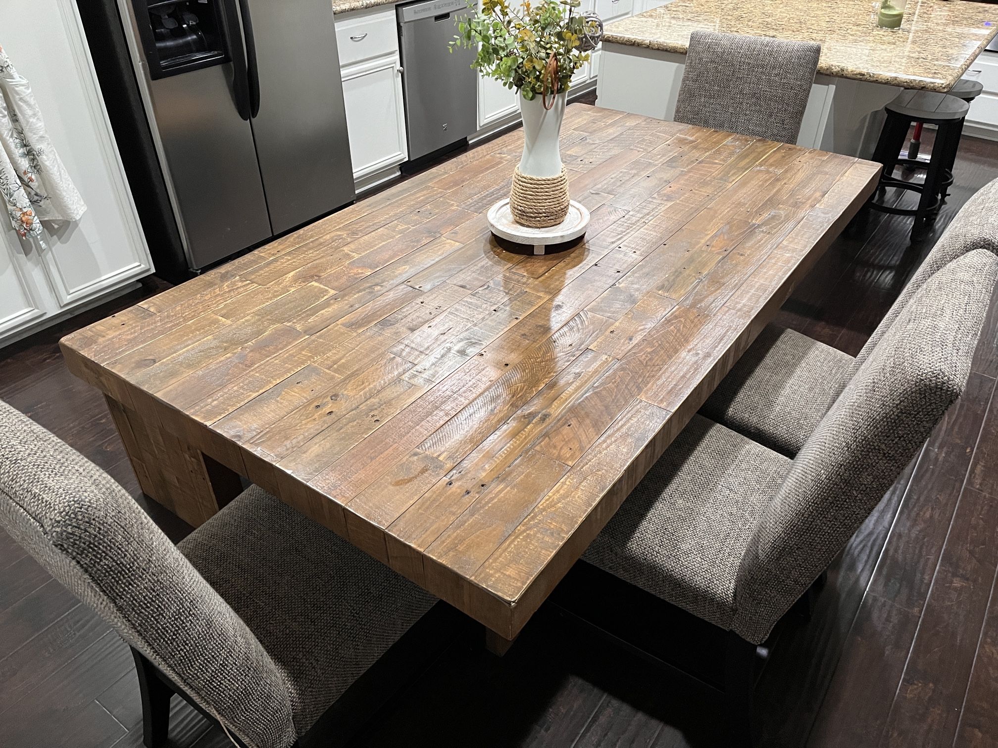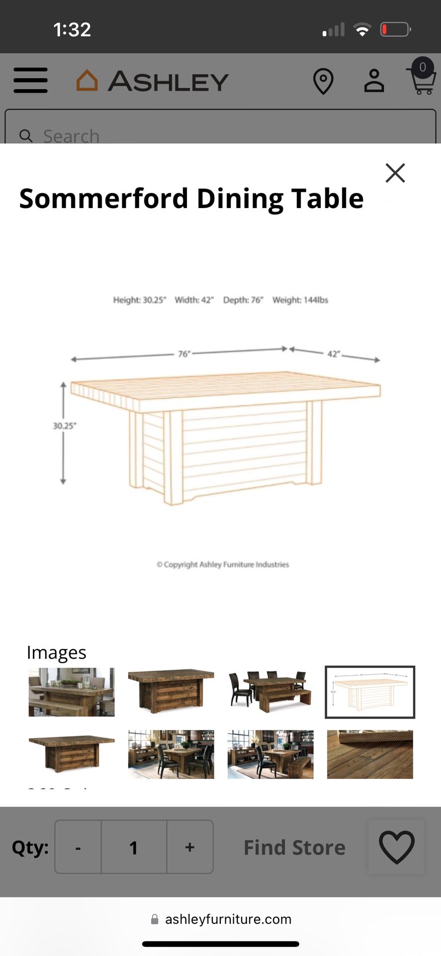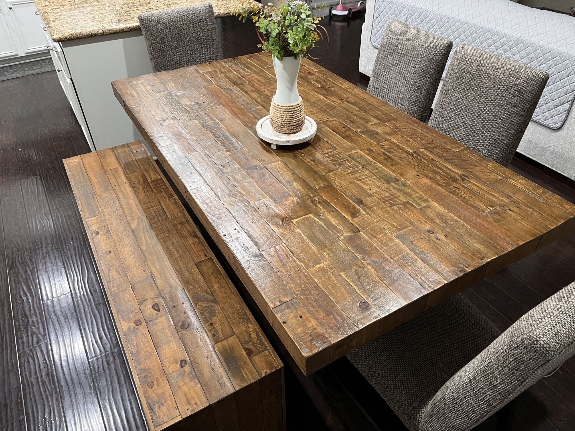 Ashley Furniture Sommerford Dining set with benchIncludes:Rectangle Dining TableLarge Bench4 Upholstered ChairsGood condition. Selling $1100.Pictures with dimensions posted.