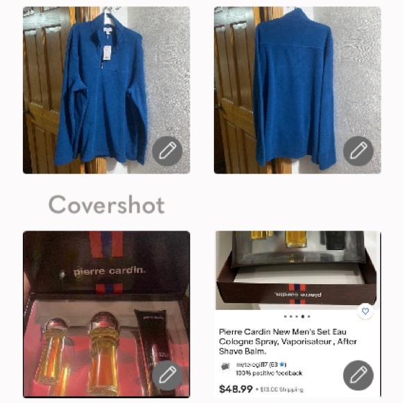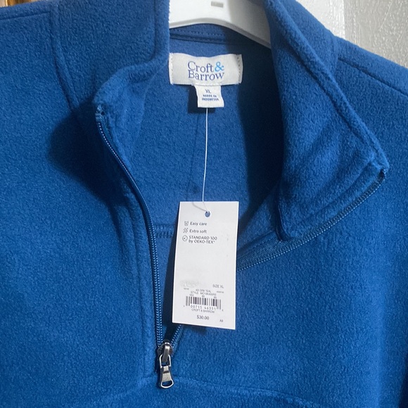 The brand new Croft & Barrow fleece 8” zip neck - easy care - extra soft - dark teal blue pull over. Enjoy the combination of comfort with fashion 30 down 27 across. This has awesome pockets on each side for storage & soft comfort on those cooler nights. What’s the three piece new in the box Pierre Cardin set enjoy smelling wonderful with this amazing combo! Makes a great gift - all new in the box!