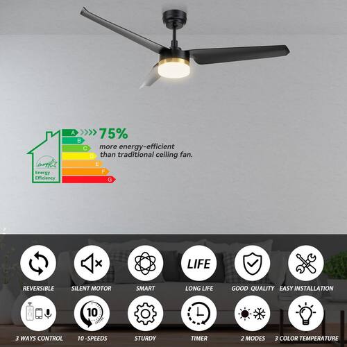 About This Product:This Attis 52 in. smart ceiling fan is a soft modern masterpiece perfect for your large indoor living spaces. Enjoy the cooling and powerful airflow that its long blades deliver during Summer afternoons or bask in the warm bright light on Winter evenings. The fan features burnished metal exterior black and complementing blades for a modern addition to any home decor.