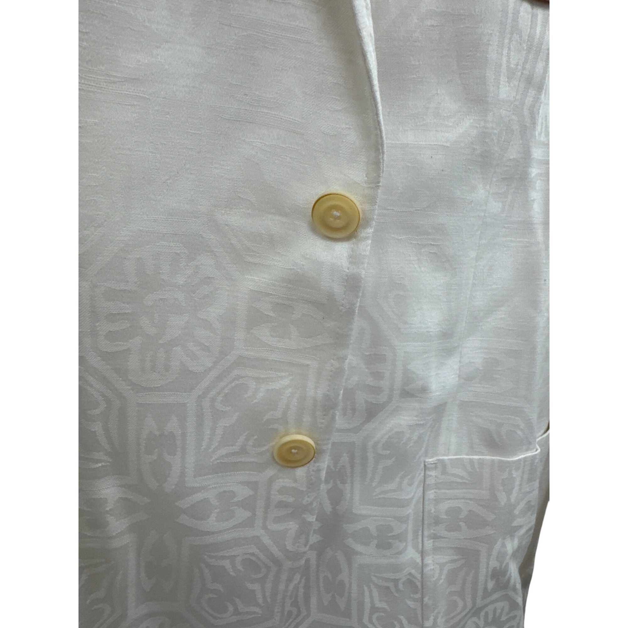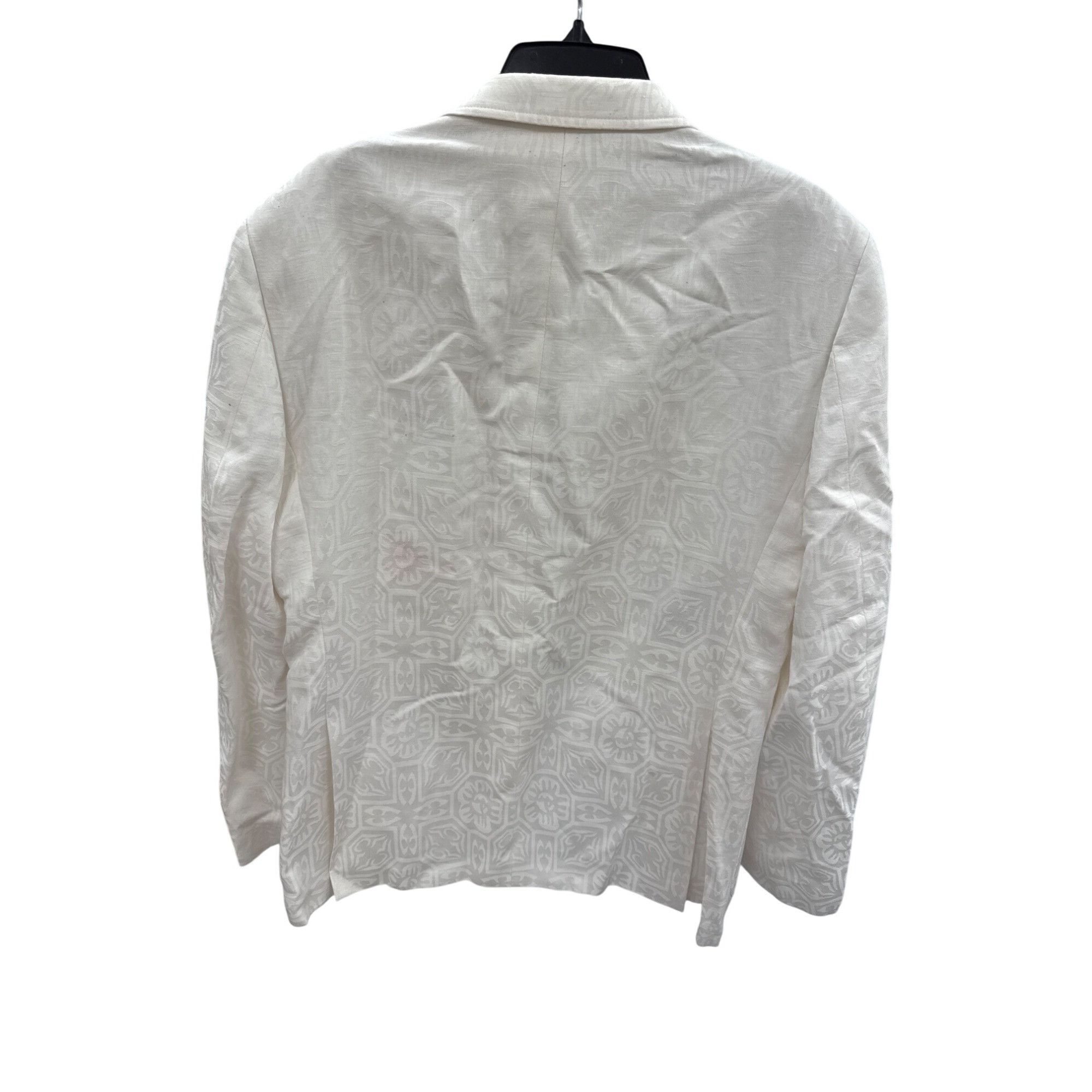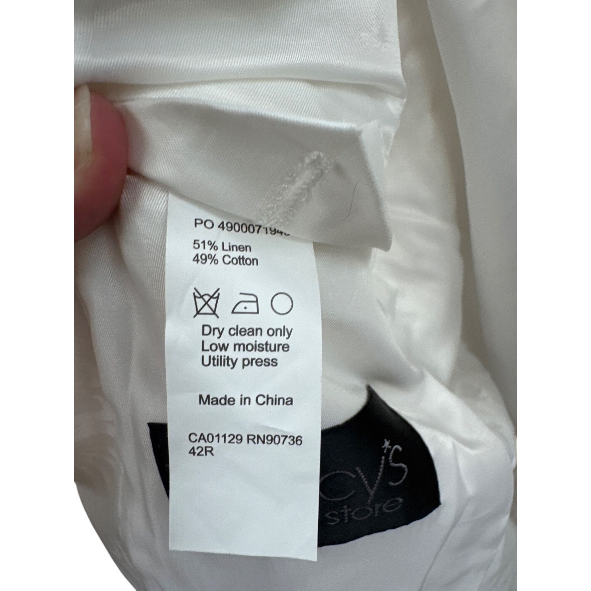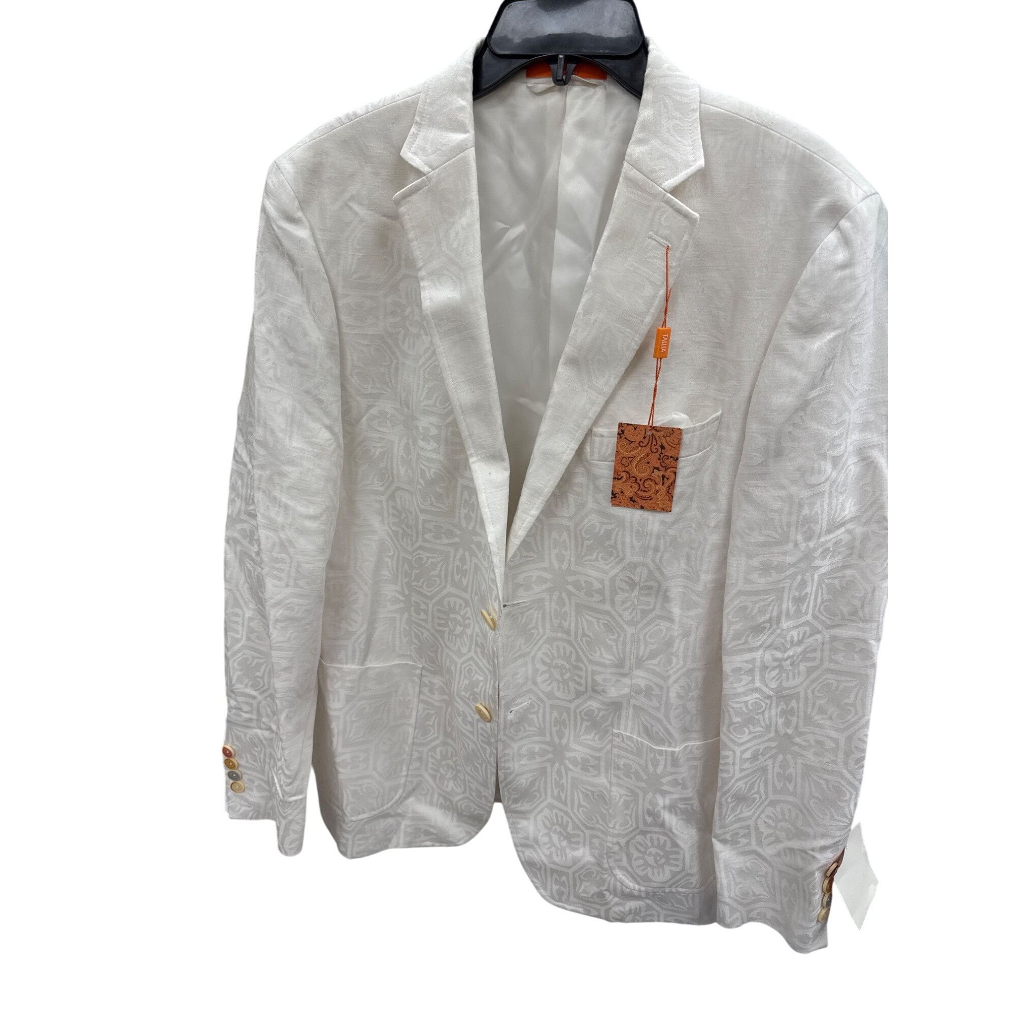 This sophisticated white mens blazer by Tallia offers a sharp and modern aesthetic. Its linen cotton blend ensures durability and breathability, ideal for elegant settings. It is unused new with tags and a beautiful wear. I ship fast. Shoulder to shoulder is 18", Chest is 19", Length is 30.5", Waist is 20". SKU8207