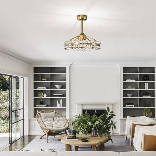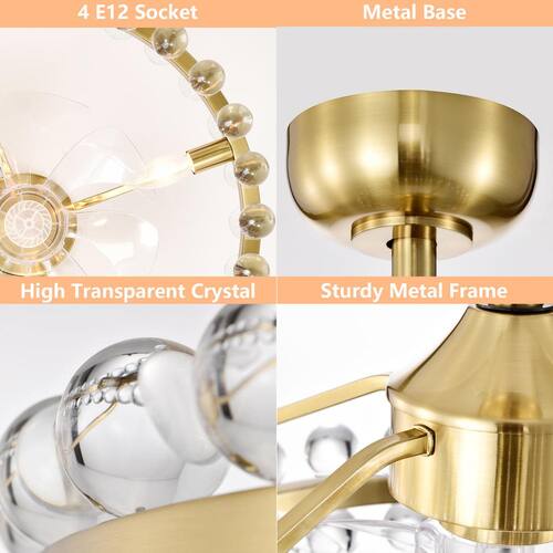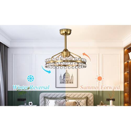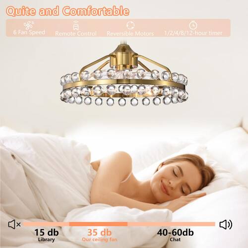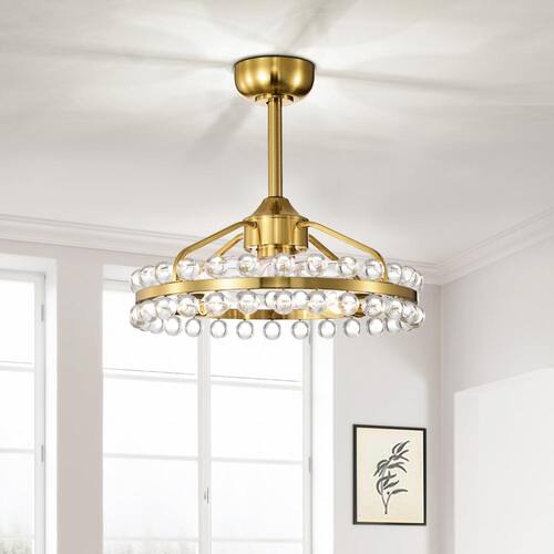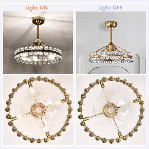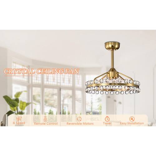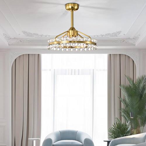 About This Product:Illuminate your space with elegance and sophistication with our modern crystal chandelier. Featuring a sleek, brushed gold finish, this stunning fixture is designed to impress. The chandelier measures 20.8 in. in diameter and 19.7 in. in height, making it the perfect size for dining rooms, living rooms, or entryways. The chandelier showcases two rows of exquisite crystal balls that capture and reflect light, creating a dazzling display. Upgrade your home with our chic and functional ceiling fan featuring an integrated light. This sophisticated fixture combines cooling comfort with brilliant illumination, making it an essential addition to any modern home.