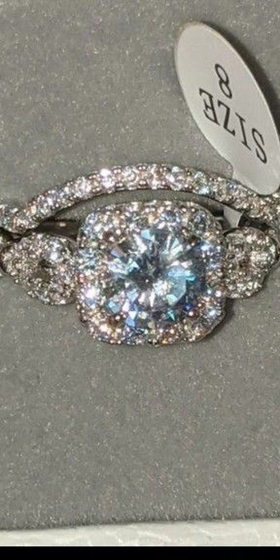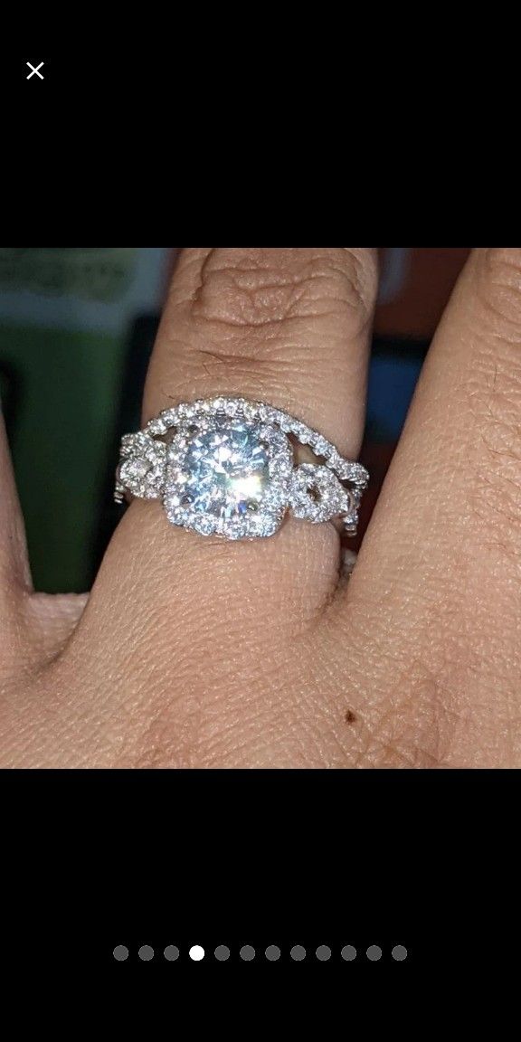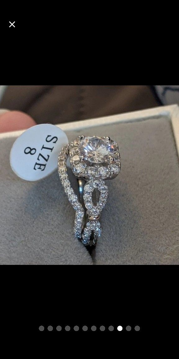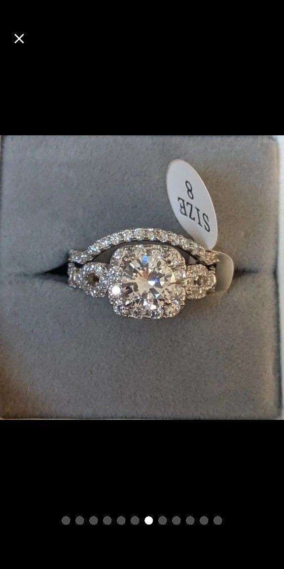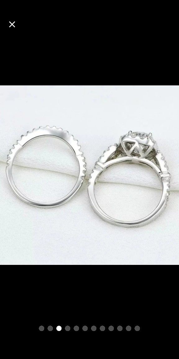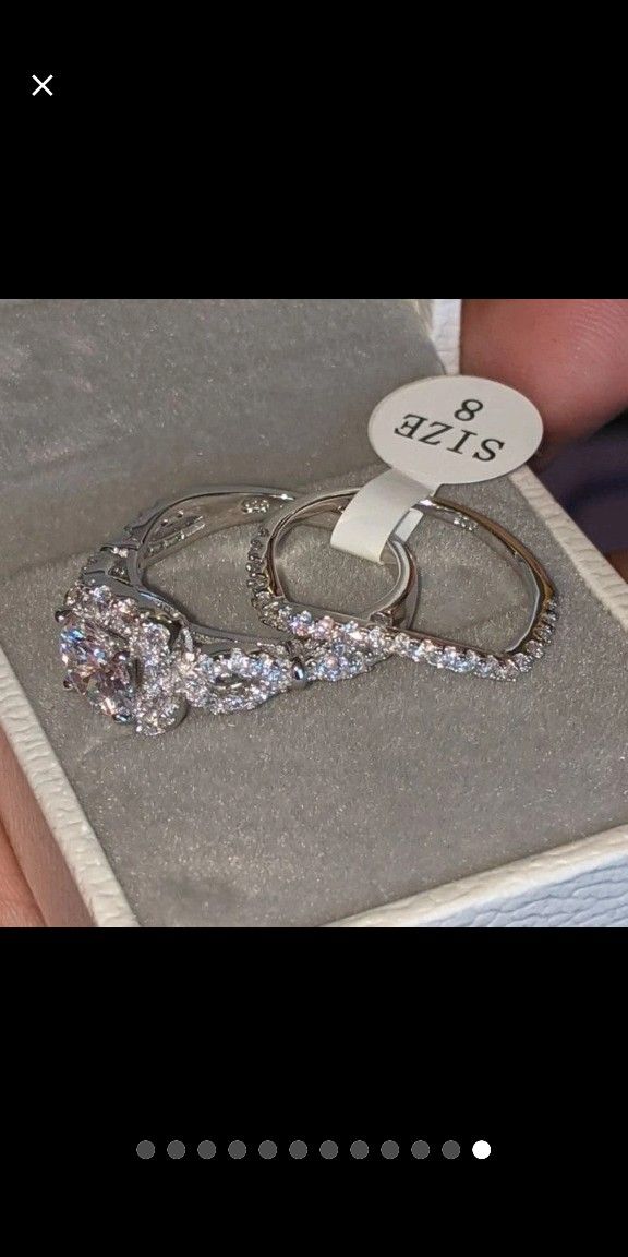 2 Pcs Wedding Ring Set Solid 925 Sterling Silver Engagement Rings For Women 1.8Ct Round Cut AAA CZ Classic JewelrySize: 8Gem Type: AAACubic ZirconiaStone Shape: Round cutMetal Type: 925 Sterling SilverColor: WhiteNumber of Stones:65 pc(s)Main Stone Size: 7mmTotal Weight: 5.7gStone Weight:1.8 CaratsWidth: 2mm+1mmTop quality stones display amazing enriched clarity just like real diamond!OFFERS ARE WELCOMEMessage me if you like the design but need a different size. I can get it ready for you.