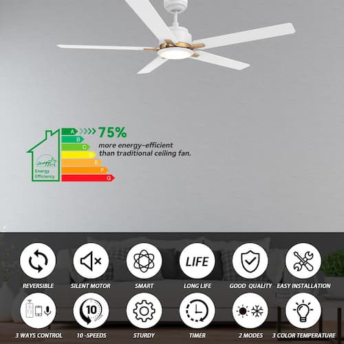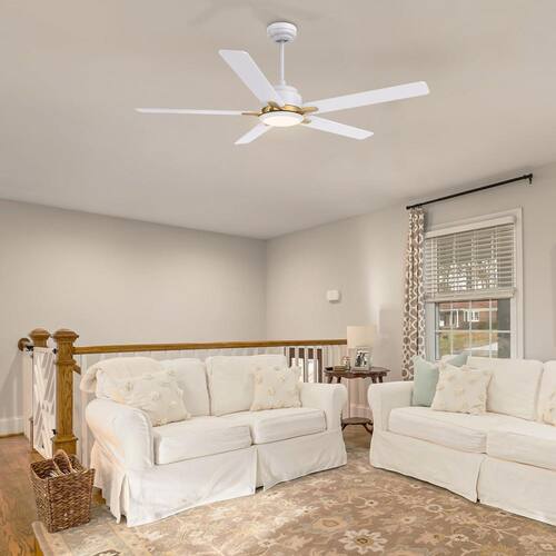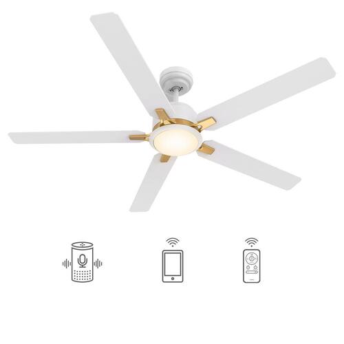 About This Product:This Essex 52 in. smart ceiling fan keeps your space cool, bright, and stylish. It is a soft modern masterpiece perfect for your large indoor living spaces. This Wifi smart ceiling fan is a simple design with white and gold finish, using high quality plywood blades and has an integrated 4000K daylight LED. The fan features remote control, Wi-Fi apps and Voice Control Technology (compatible with Alexa and Google Home Assistant, but not included) to set fan preferences.