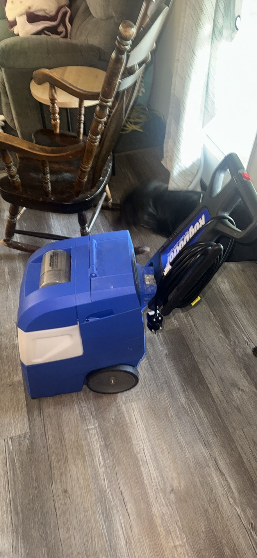 Rug Doctor carpet cleaner, blue color, works perfectly. Ideal for deep cleaning carpets and rugs. No extra attachments, just the main unit. Pickup only, cash preferred.
