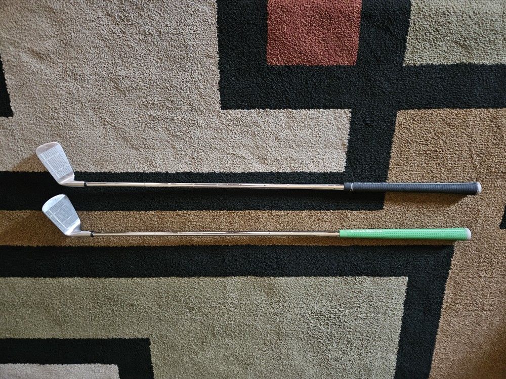 45 degree wedge and a 60 degree wedge. I will sell separate for $40 each or both for $70. Both have very little use and are in good shape. Grips are still in good shape and the club faces have very little wear.