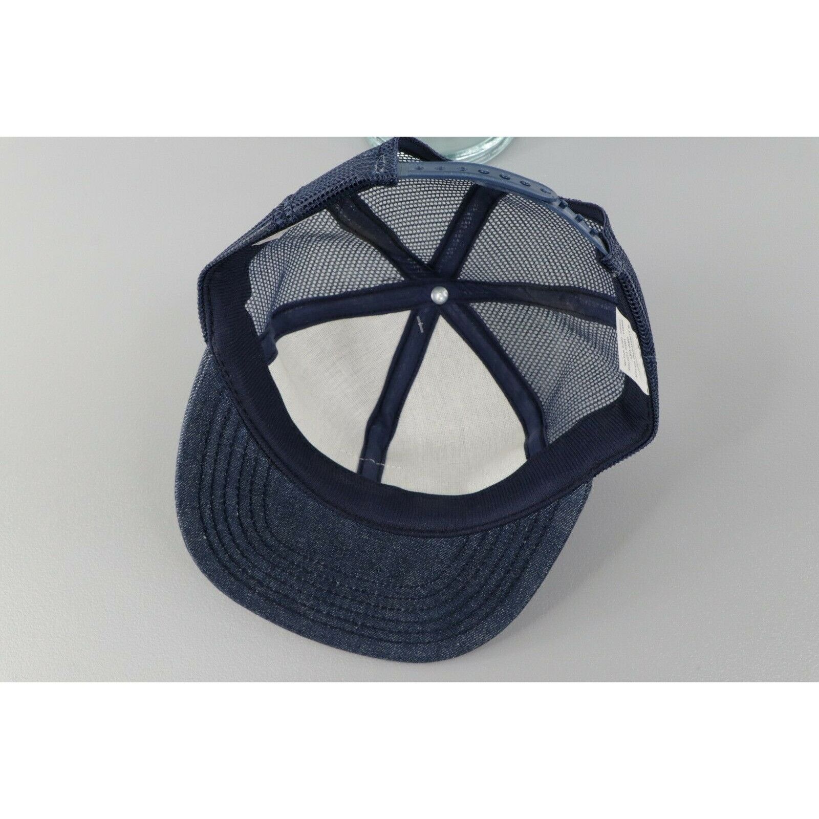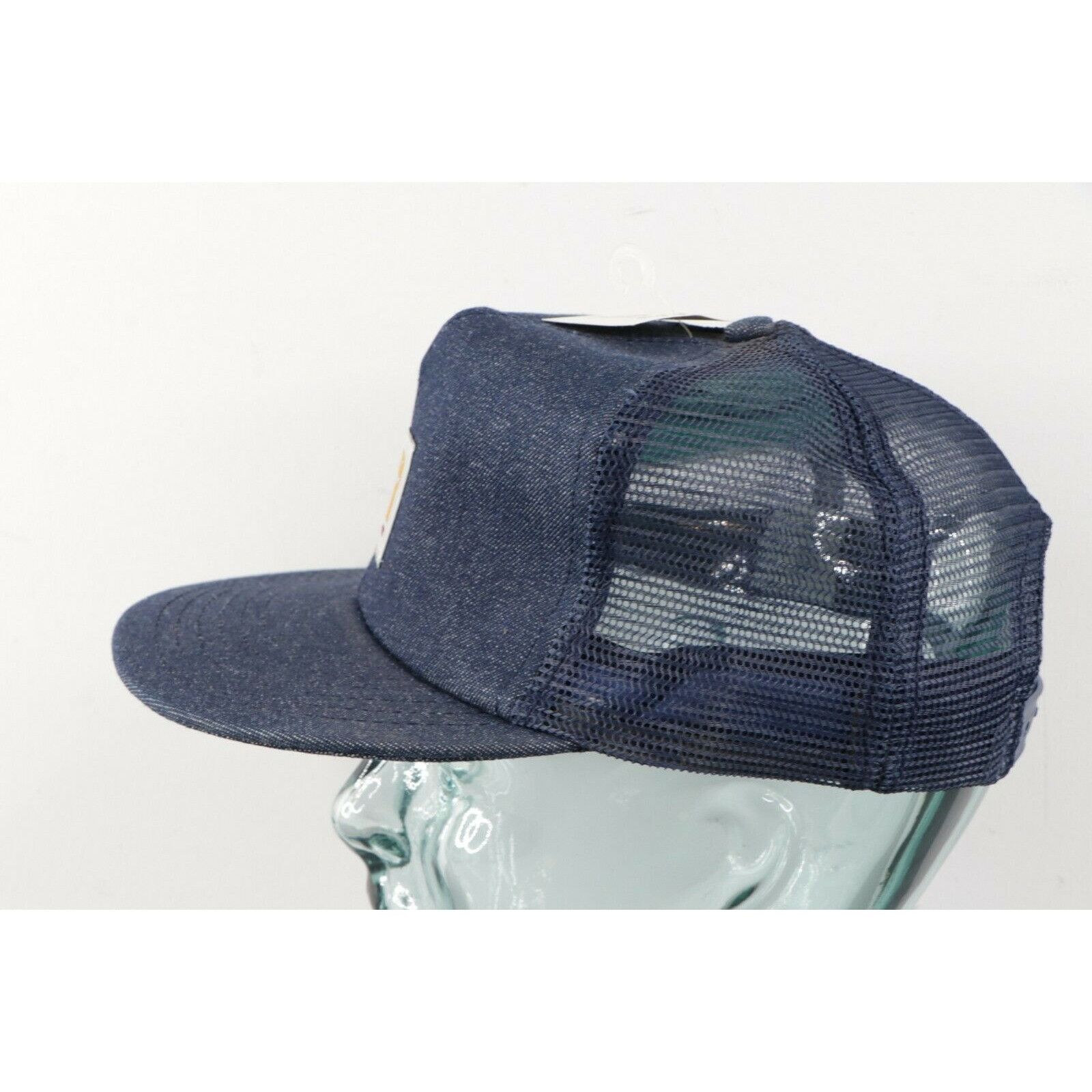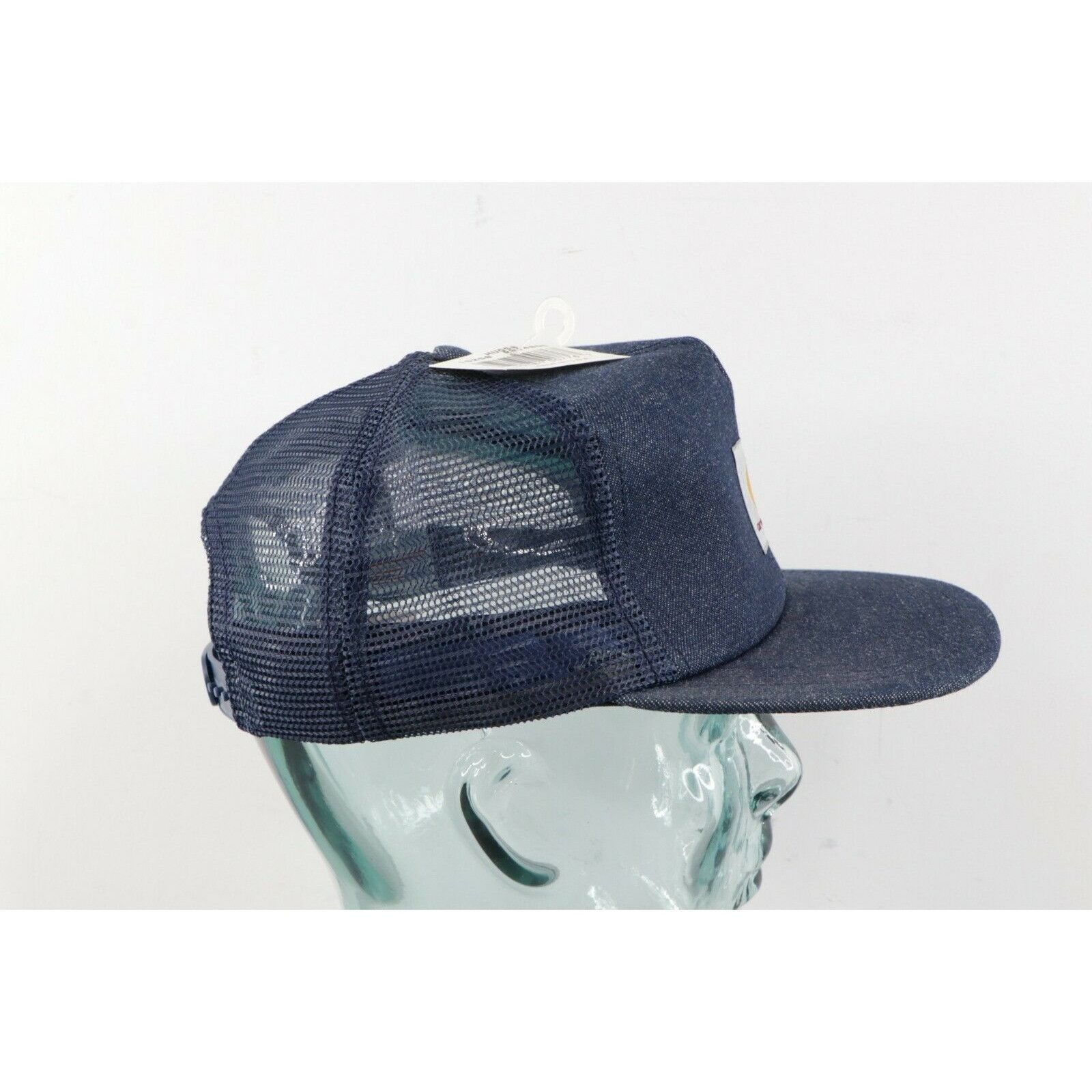 NOS Vintage 80s Carhartt Spell Out Patch Denim Trucker Hat Snapback USA Made