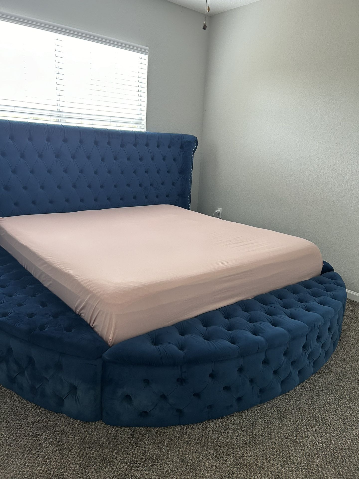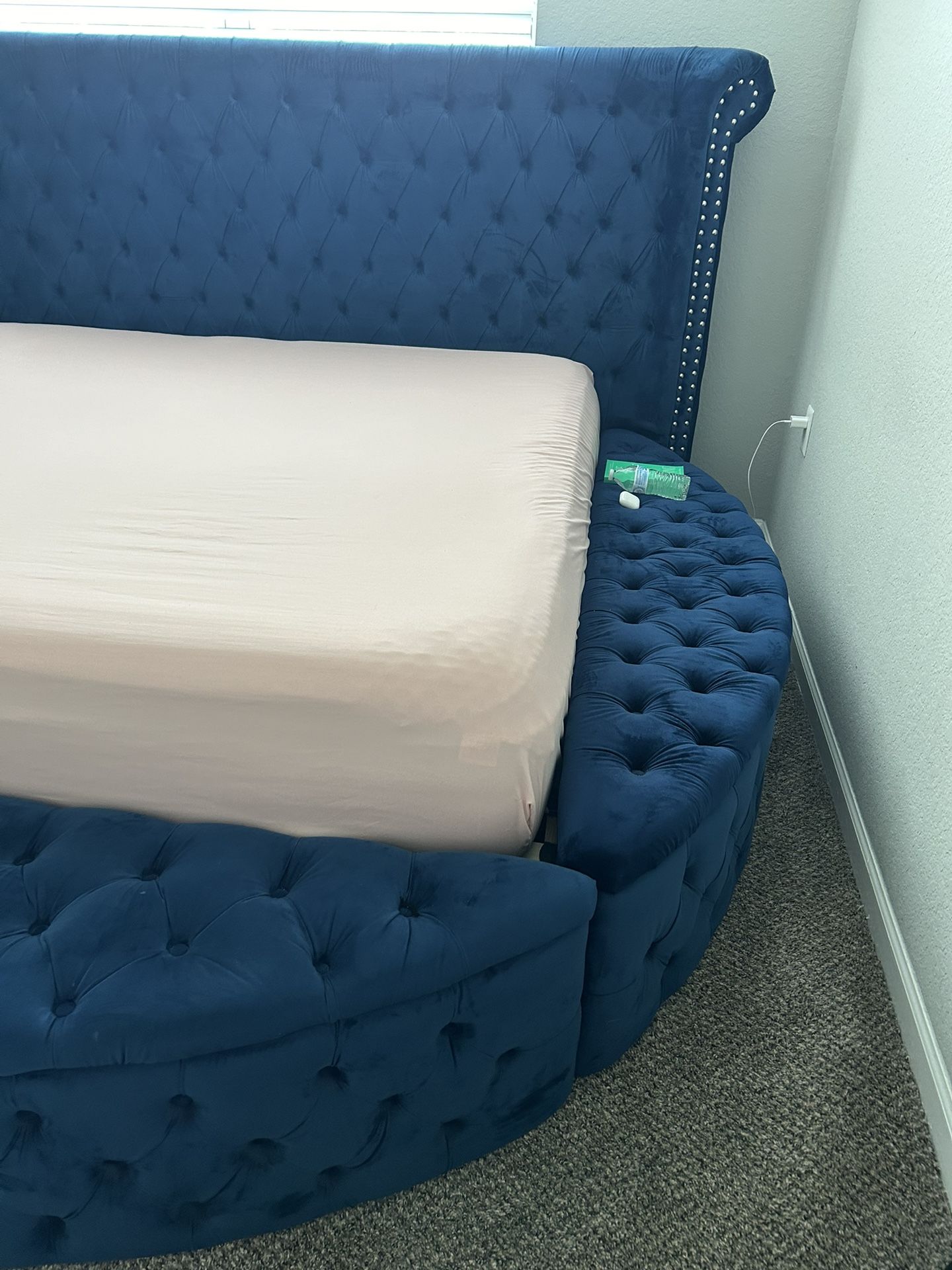 King size bed with storage on each side and front. Sold with king mattress that has a mattress protector since purchase