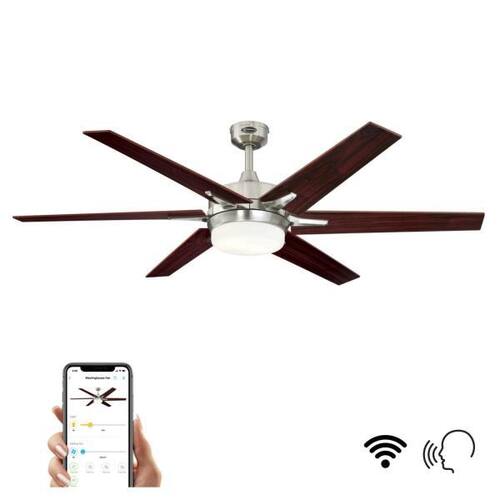 About This Product:The transitional-style Cayuga Wi-Fi-enabled ceiling fan easily integrates with a wide range of control systems, including: SmartThings, Control4, ELAN, Hubitat, Savant, and others. In addition, the smart fan offers convenient, app-only features to enhance your hands-free, mobile lifestyle. Customize your schedule, or try the breeze speed that randomly increases and decreases airflow to mimic the feel of natural wind. Enjoy voice-activated control at home, or control your fan from anywhere with your smartphone. This 60 in. ceiling fan is ideal for great rooms and demands a second look in a brushed nickel finish highlighting a casually modern design. Both ceiling fan and light kit provide energy-saving benefits while adding comfort and long-lasting illumination. In addition, this Westinghouse ceiling fan is backed by a lifetime warranty on the motor and a 2-year warranty on all other parts. Westinghouse is a trusted, global brand. Westinghouse knows lighting and offers products with exceptional quality, reliability, and functionality. Product reference number 74003B.