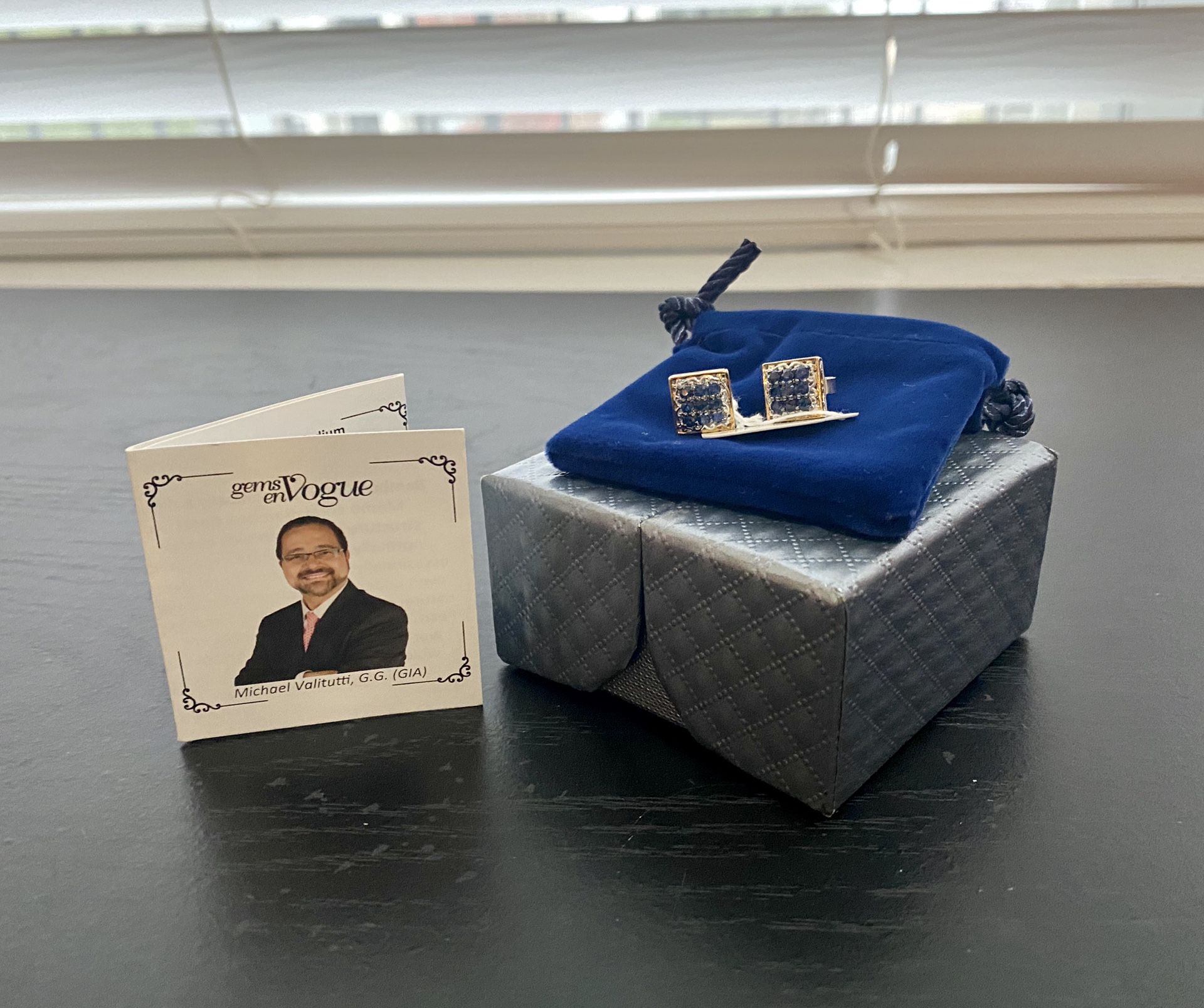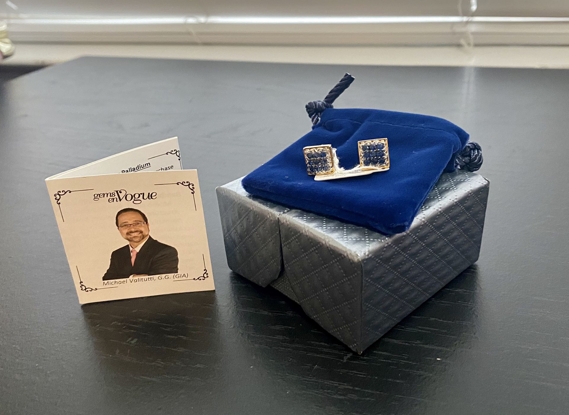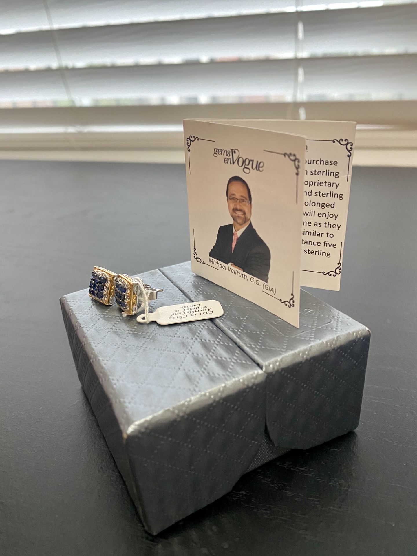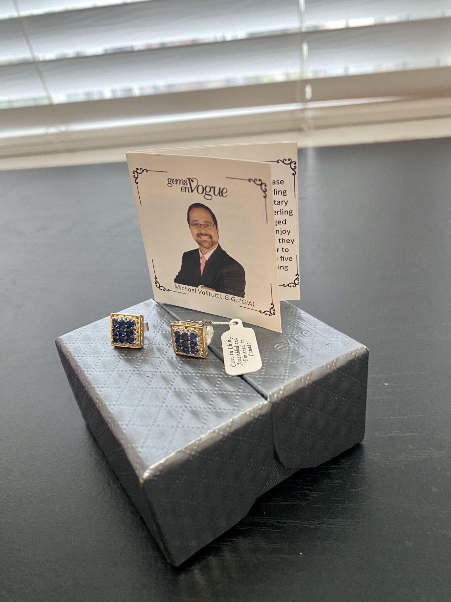 BRAND NEW W/ TAGS — ORIGINALLY $278.50DescriptionMake these bole, blue studs a staple in your jewelry collection fit for a queen! Each two-tone scrollwork detailed earring in this pair features a square cluster design covered with stunning royal blue sapphires. Butterfly backings allow for easy, no-fuss fastening so you can get to looking fabulous in no time!Earring DetailsMetal: 18K gold embraced™ sterling silver and palladiumStone Information: 18 round modified-brilliant cut 2.25mm royal blue sapphiresSetting Type: ProngApproximate Total Weight: 1.09ctwMeasurements: 3/8"L x 3/8"W x 3/16"HBacking: ButterflyCollection: Gems en Vogue