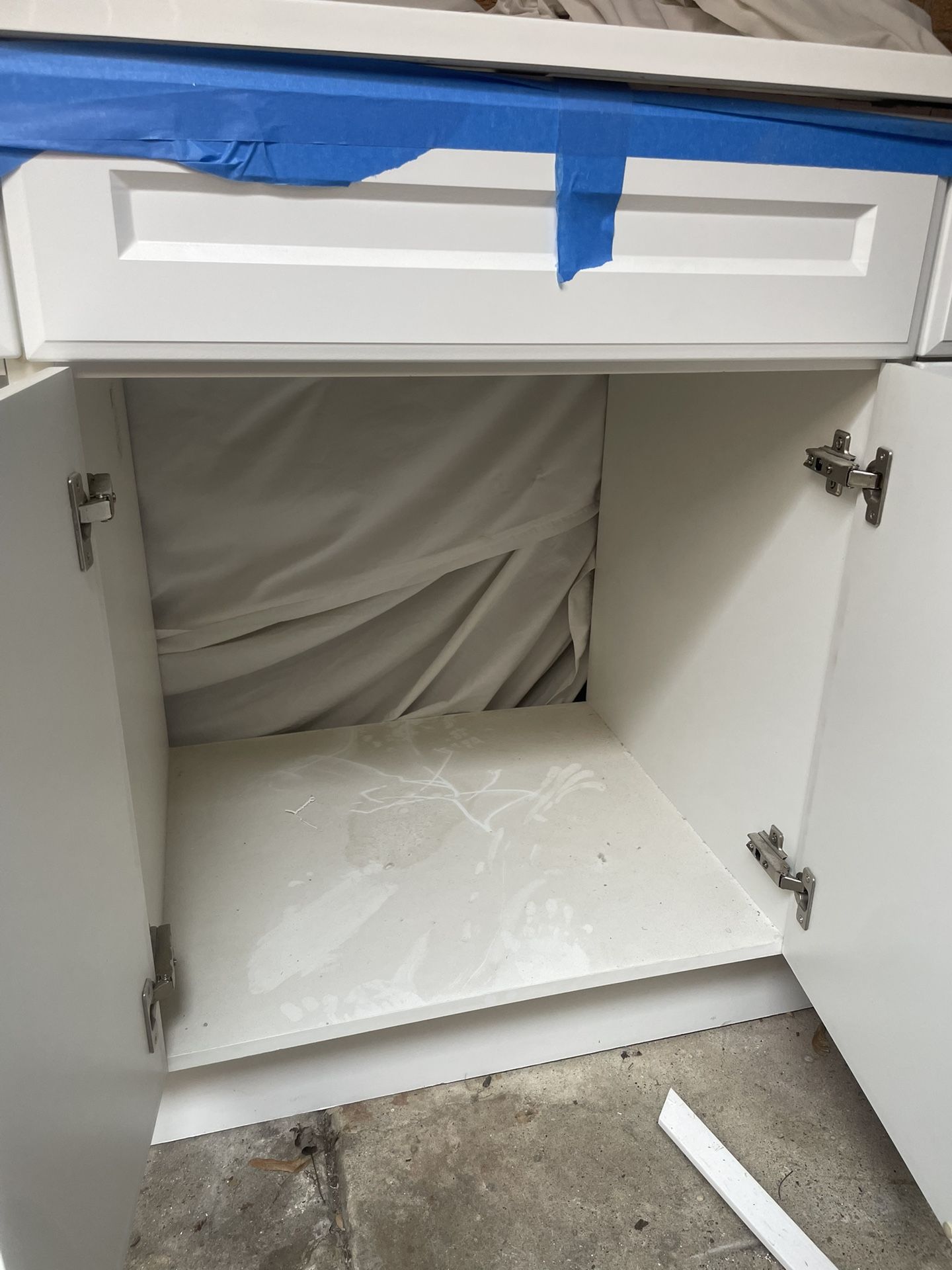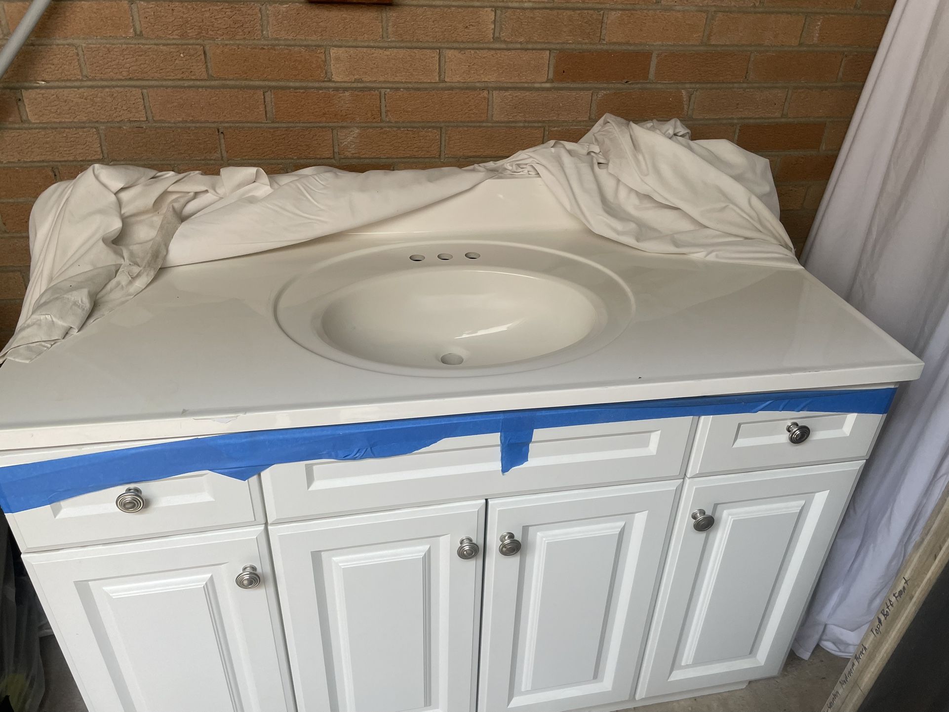 Bought new for my bathroom but insted renovated into full bathroom. Original price for 429 for vanity cabinet and 300 for marble vanity top.