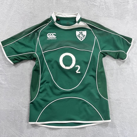 Ireland Rugby Jersey IRFU Medium Green 2007 2008 2009 Home CanterburyCanterbury home jersey of the Irish Rugby Union from the period 2007-2009 with the official IRFU sponsorship logo "O2". Condition:Stains/wear shown in pictures. Size tag worn off see measurements for fit. Fits SLIM!Measurements are only estimates and are in pictures. ~All offers are welcome!~Shipping Every Morning!My customer´s satisfaction is my top priority.Please contact me first.I´ll do my best to answer any questions and resolve any issues.Incase I missed any defects please contact me first so I can make it right!Thank you for stopping by!