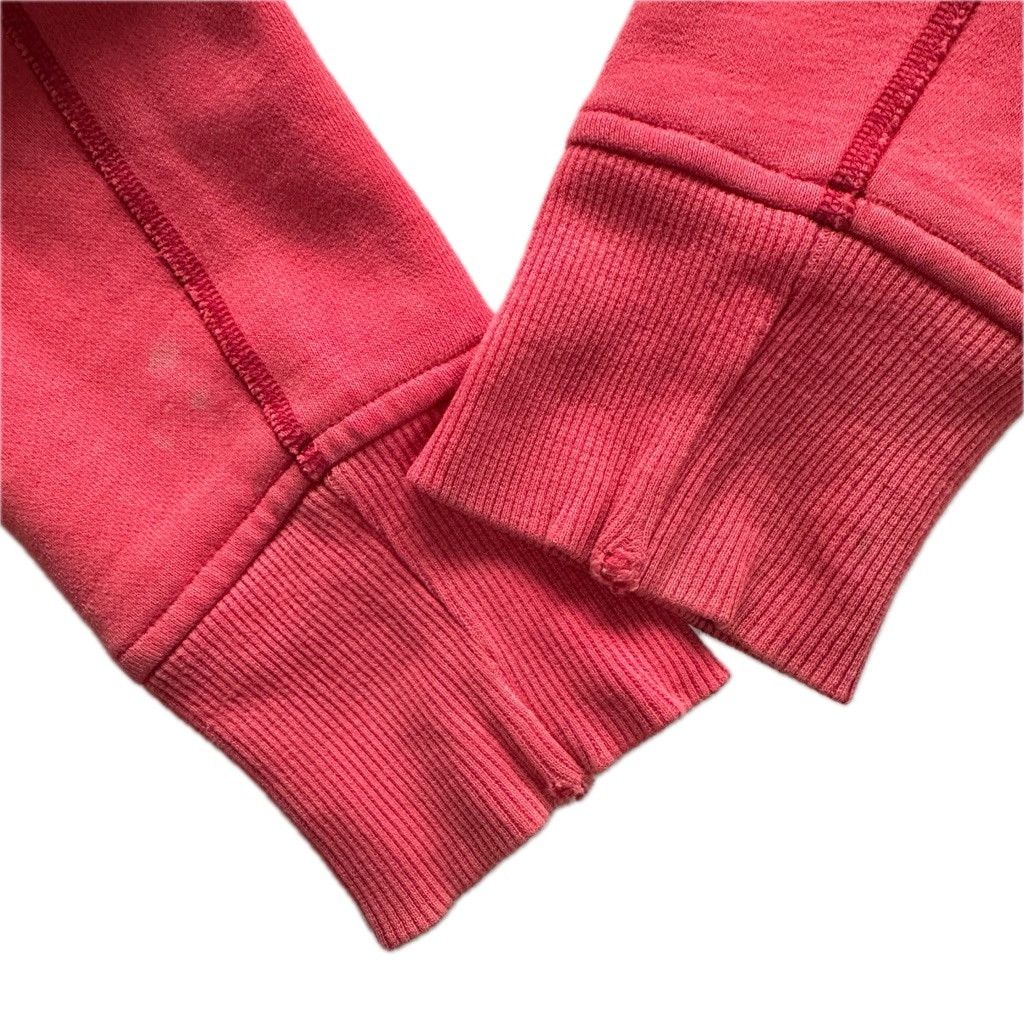condition. No stains. No tears or holes. Some spots on left underarm near cuff. Little unravelling underarm cuff. Minor pilling. No thumbholes.