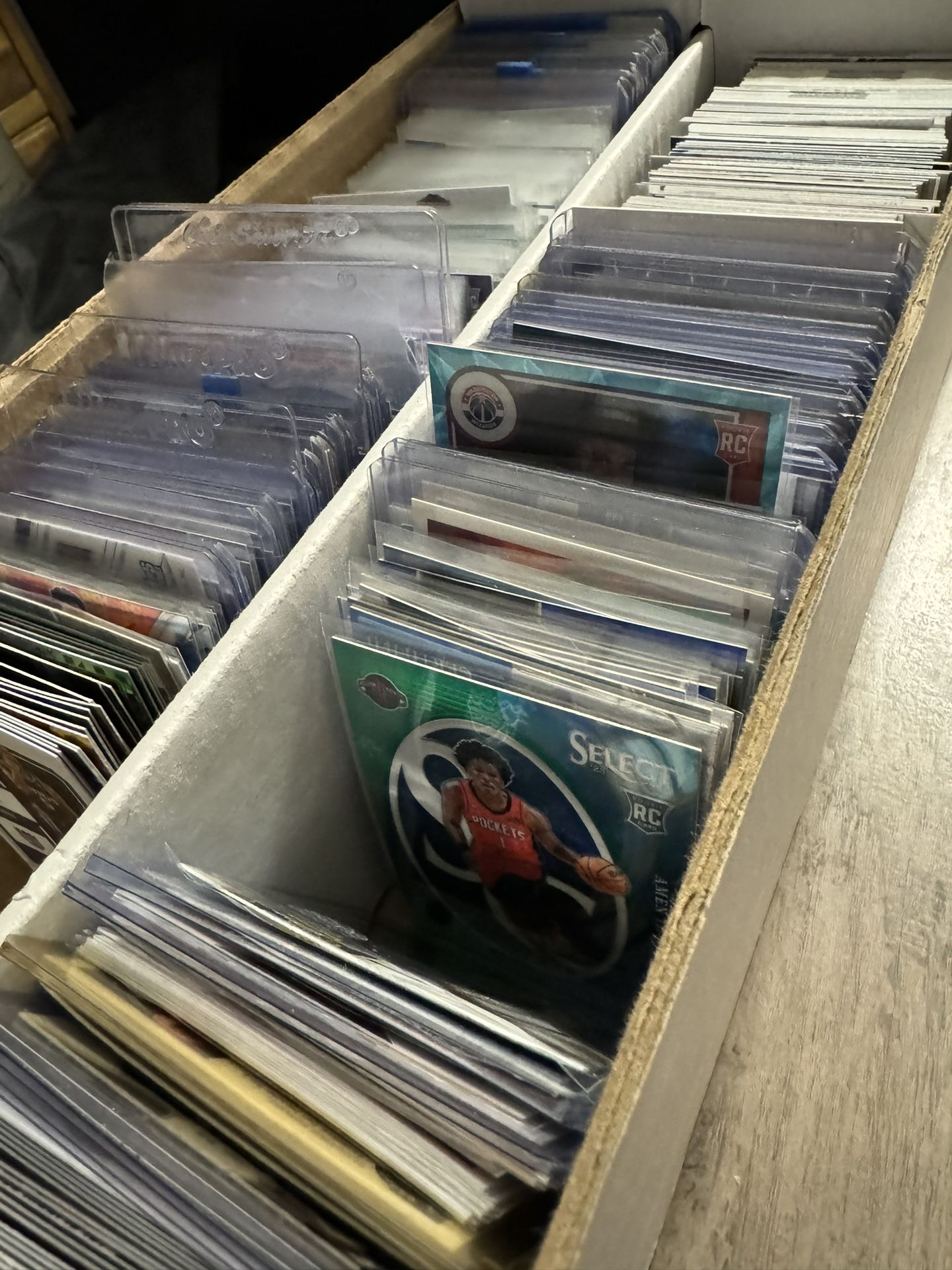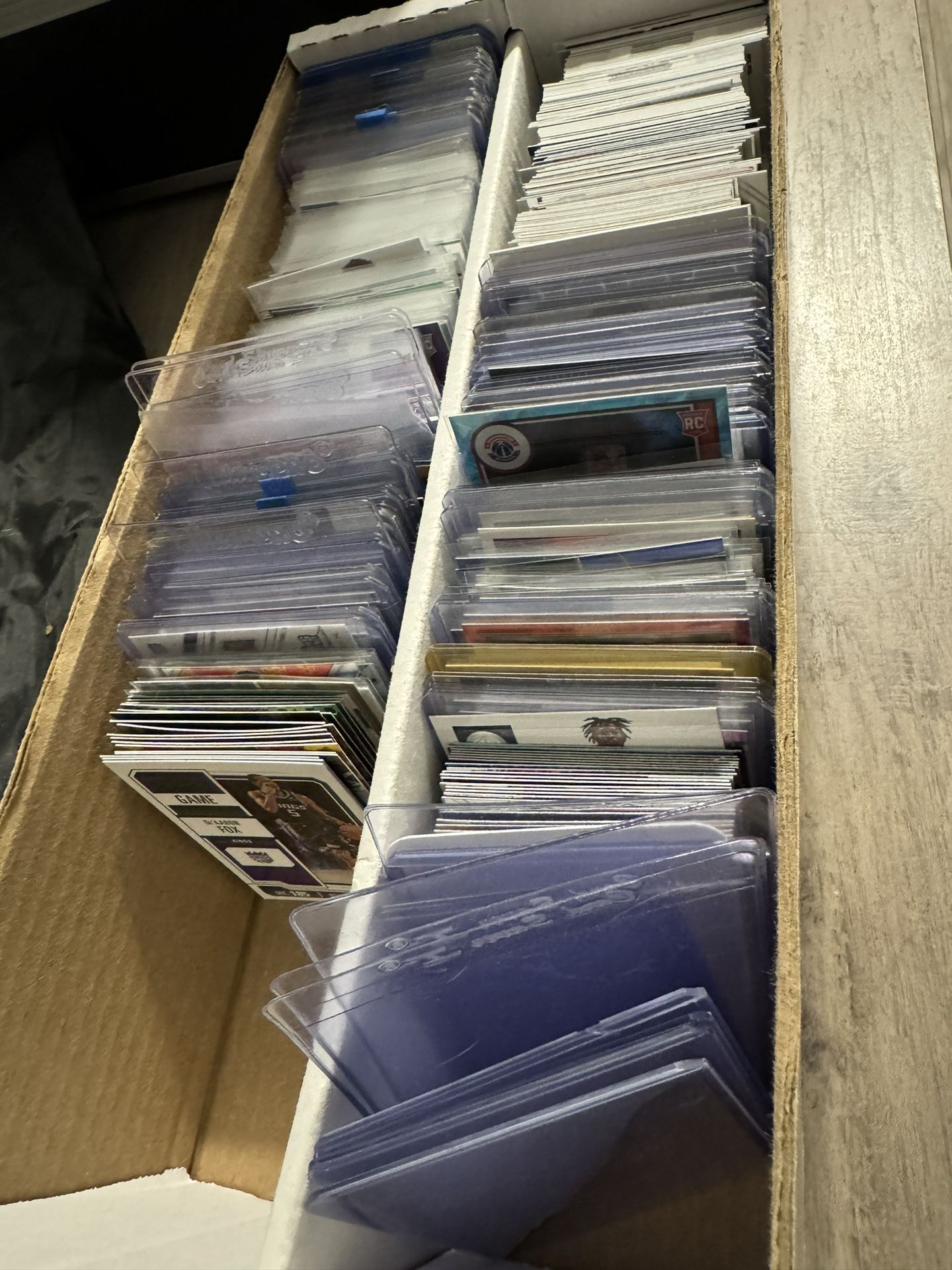 Prizm, mosaic, rookie cards, small amount of early 2000s NBA, mostly 2018-2024 NBA, names like Ja Morant, pablo panchero , Thompson twins , Zion anthony edwards, kawhi, herro rookie cards. These cards aren’t super high end but they are not junk cards either! Most cards in this collection have been placed in penny sleeves or top loaders to ensure good condition! Hundreds of rookies, cool cards.