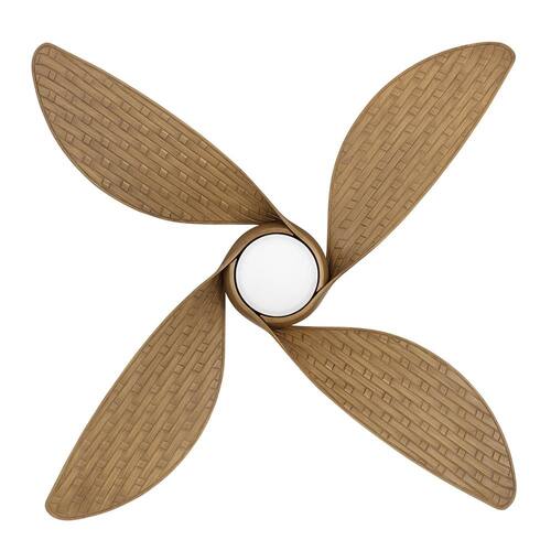 About This Product:Add a modern take on tropical design to your outdoor living space with the 52 in. Fernbrooke ceiling fan by Hampton Bay. This wet rated fan is perfect for use in any outdoor location and looks great indoors too. The brown oak finish is complemented with 4 unique woven-patterned blades to create a beautiful new look. The powerful and quiet DC motor offers increased energy efficiency when compared to standard AC motor fans and the integrated, dimmable light kit offers 6 different light color temperatures to choose from ranging from warm white to daylight deluxe. A full-function remote is included, placing convenient control at your fingertips.