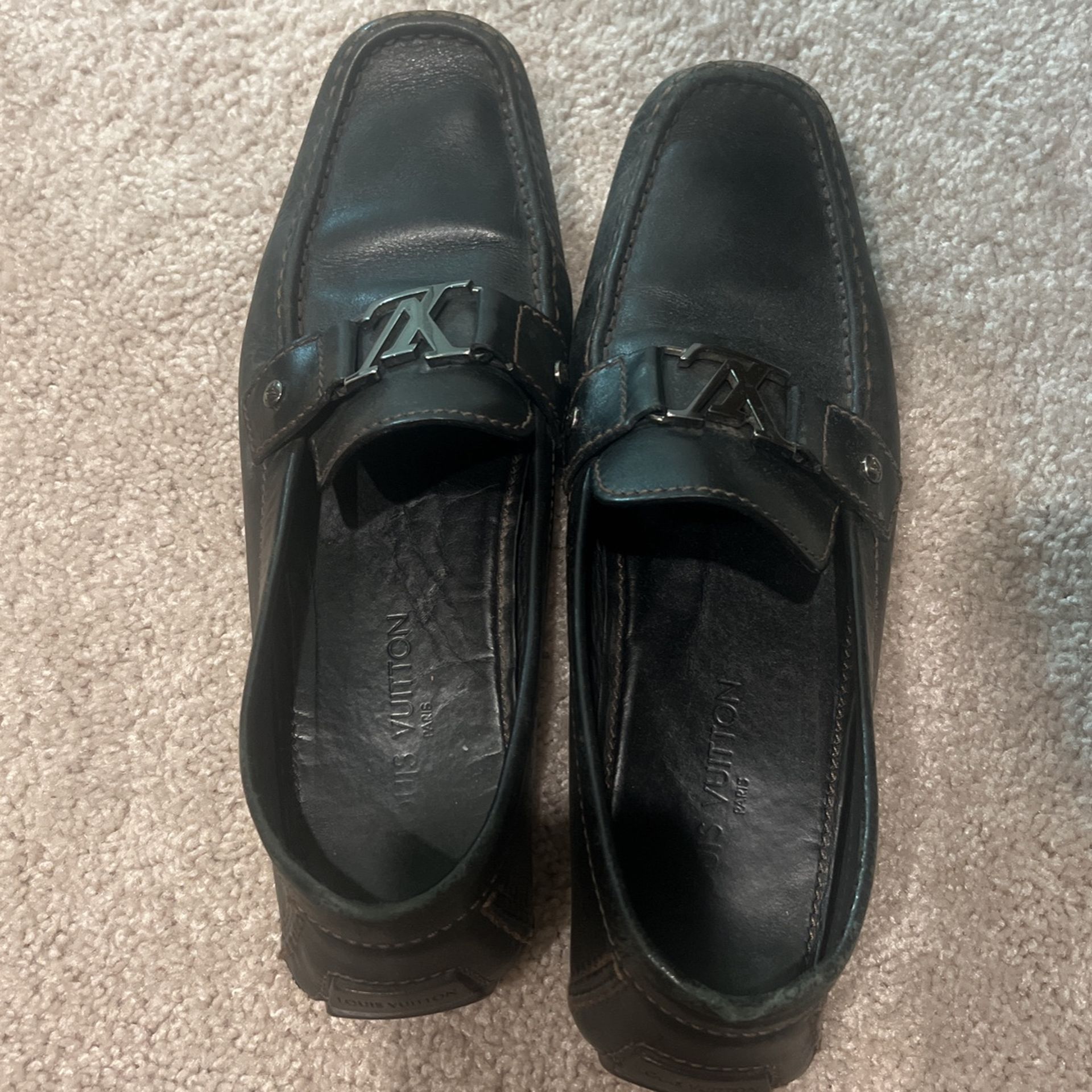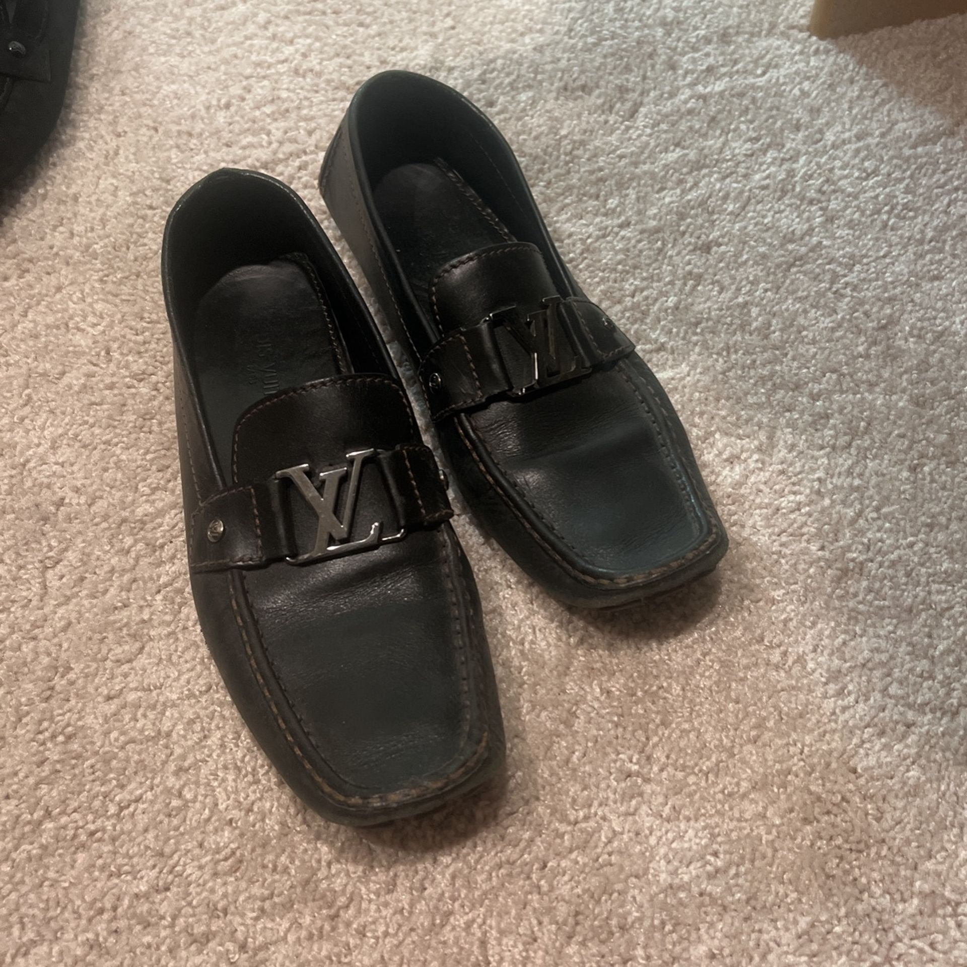 Authentic men’s, Louis Vuitton, loafers, dark, brown leather, the size 11. Used