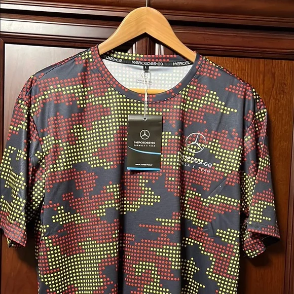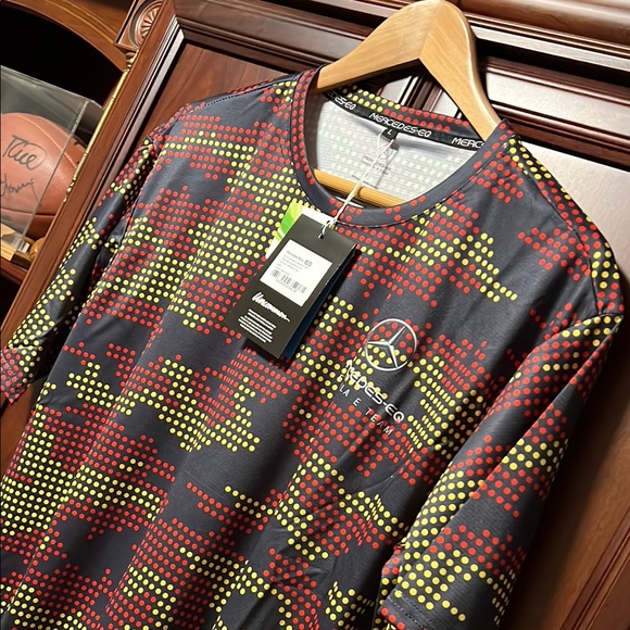 This short-sleeved tee from Mercedes AMG Petronas showcases a bold design in black and red, perfect for casual outings or sports activities. Crafted from lightweight material, it features a round neckline that enhances its stylish appeal. #00SMA25