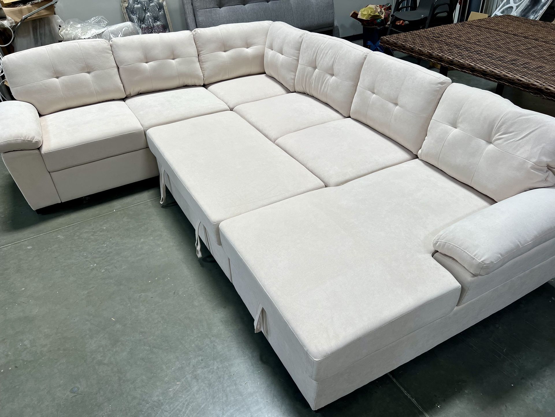 New! Ivory Premium Large sectional sofa with pull-out bed, sofa bed, sectional sofa bed with storage chaise. Sectionals, sofa, couch. Soft upholstered sectional sleeper sofa. Dimensions 118”L x 92”D Brand new set!
