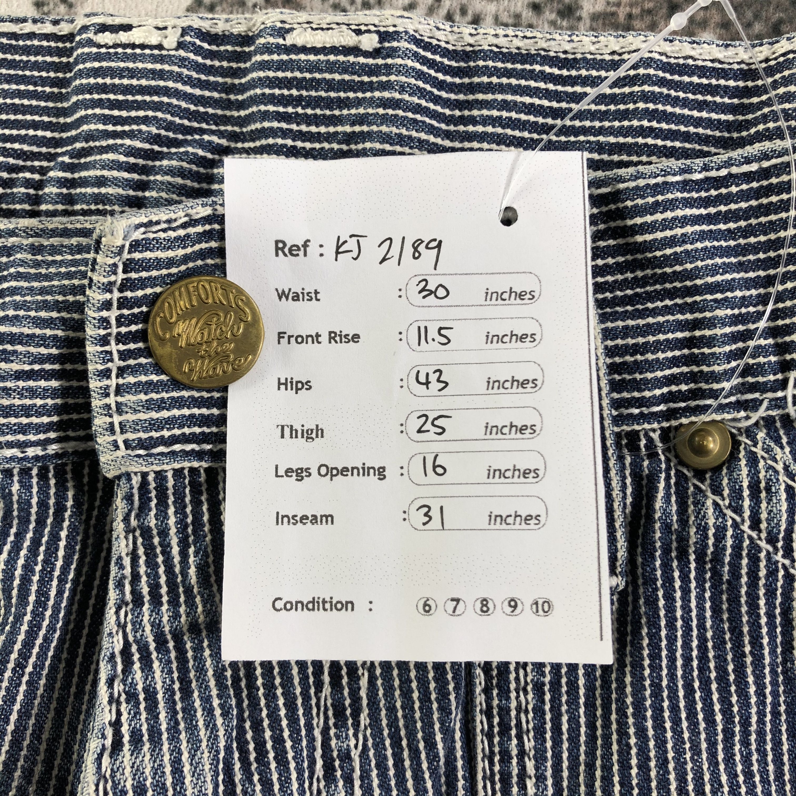 Measurements:Waist – 30 inchesFront Rise - 11.5 inchesHips - 43 inchesThigh - 25 inchesLeg opening – 16 inchesInseam – 31 inches