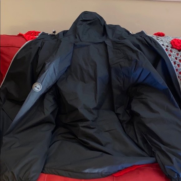 Bnwt never used2 outer pockets (deep)1 inner pocketDrawstring hoodieTimberland logoon left sleeveWaist drawstring also