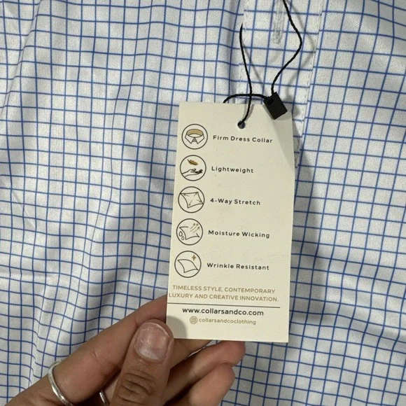NWT Collars and Co Men´s Size Small Semi-Spread Collar Polo Thin Blue Check6861-6874