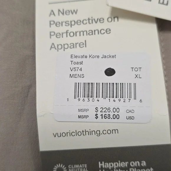 Vuori´s Elevate Kore Jacket is a responsive outer layer designed for outdoor fitness. It´s made with our quick-to-dry, partially recycled fabric that helps to disperse heat while adding the right amount of warmth.FEATURES:•4-Way Stretch•Moisture Wicking•Quick Drying•Made With Recycled Material•Soft and lightweight ultra stretch performance woven•Kangaroo Pocket•Zip PocketFIT:•Modern Athletic Fit•Classic fit, straighter silhouette over body•Body Length: 28"•Pit to Pit: 23"•Pit to Cuff: 23.5" FABRIC AND CARE:•46% Polyester, 42% Recycled Polyester, 12% Elastane•Machine Wash Cold With Like Colors Only•Non Chlorine Bleach When Needed•Remove Promptly•Tumble Dry Low•Do Not Iron